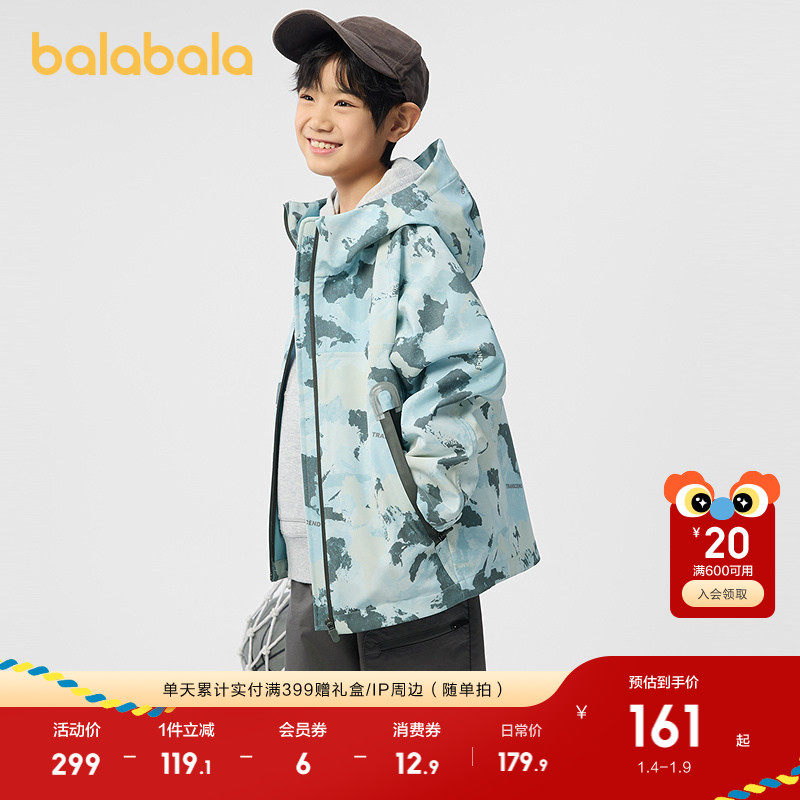 巴拉巴拉童装男童外套儿童软壳衣春装上衣连帽迷彩防风防泼水透湿