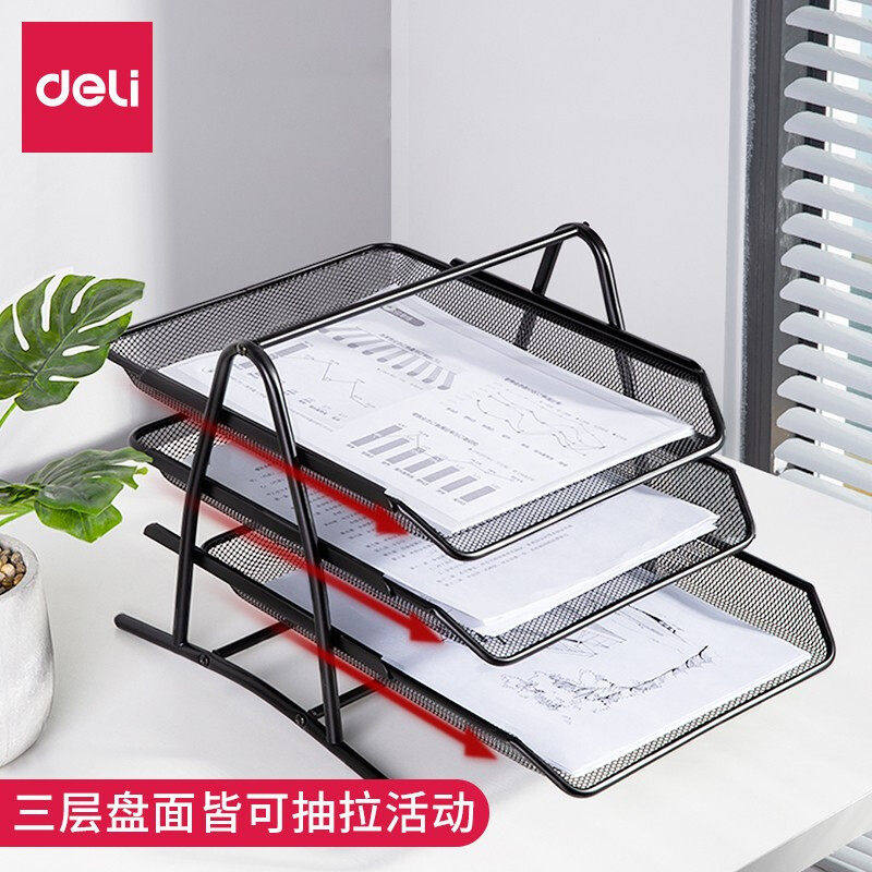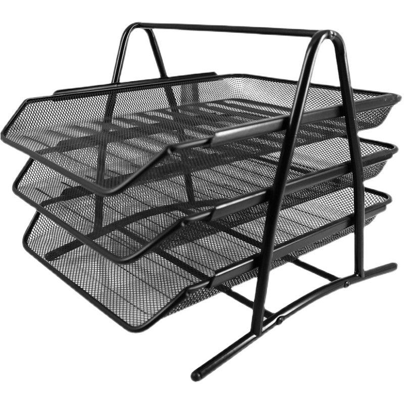 得力网状文件架三层文件座资料篮收纳框架三层整理置物架金属档案框办公桌面资料架文件篮筐文件柜盘