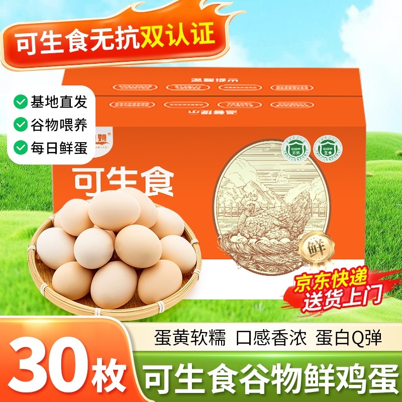 京东上门新鲜富硒可生食鸡蛋30枚鲜鸡蛋无抗生鲜礼盒装谷物农场