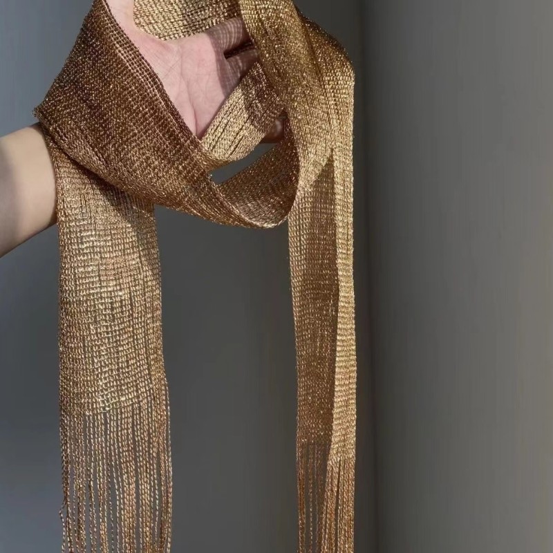 vintage美丽夏季气质百搭飘带搭配丝巾金丝长款女士流苏围巾高智