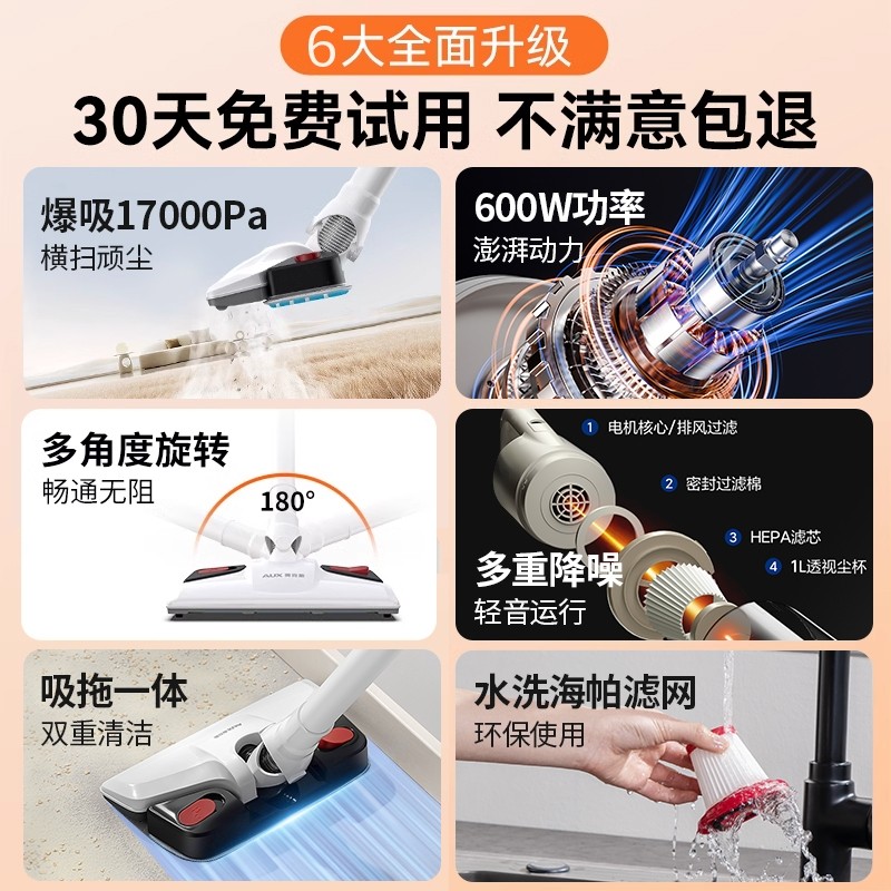 奥克斯吸尘器家用大吸力吸拖一体机小型手持拖把二合一除尘机猫毛