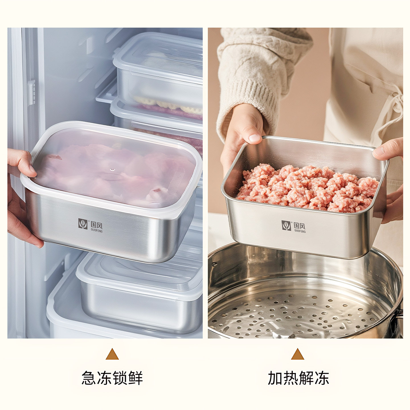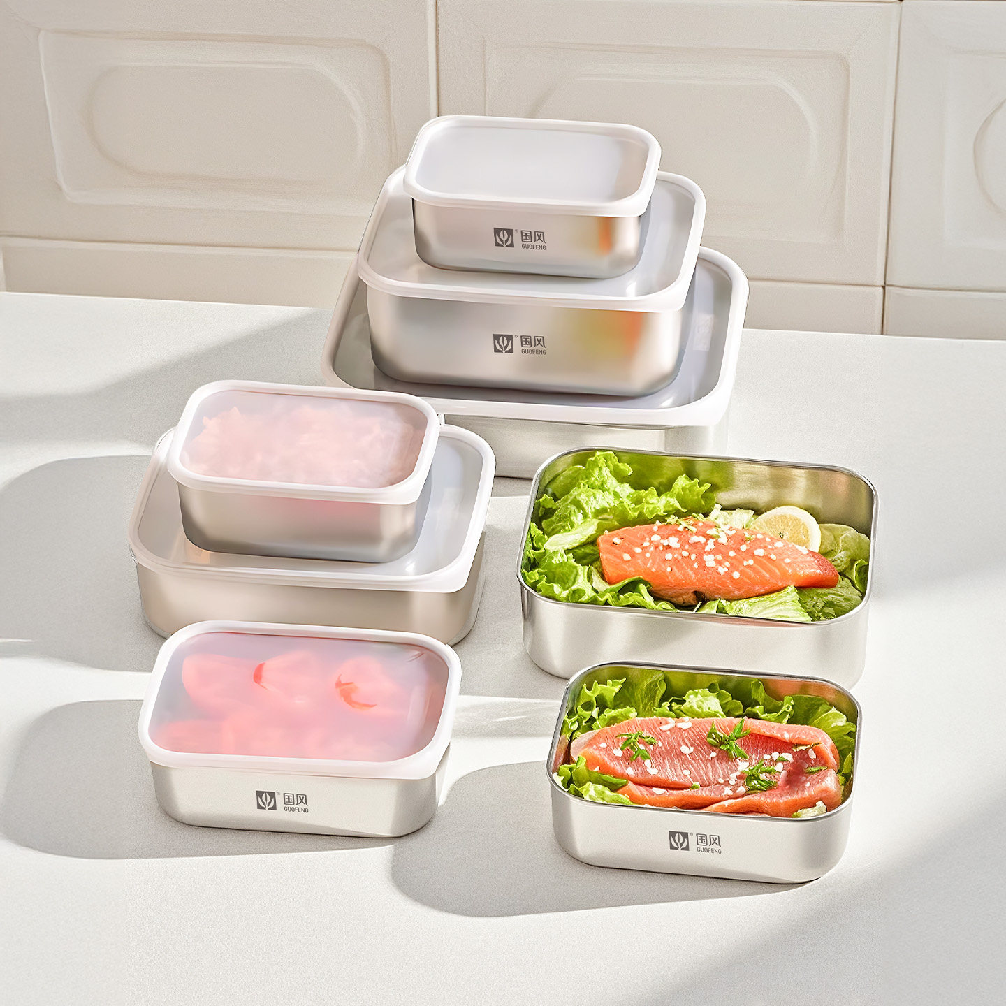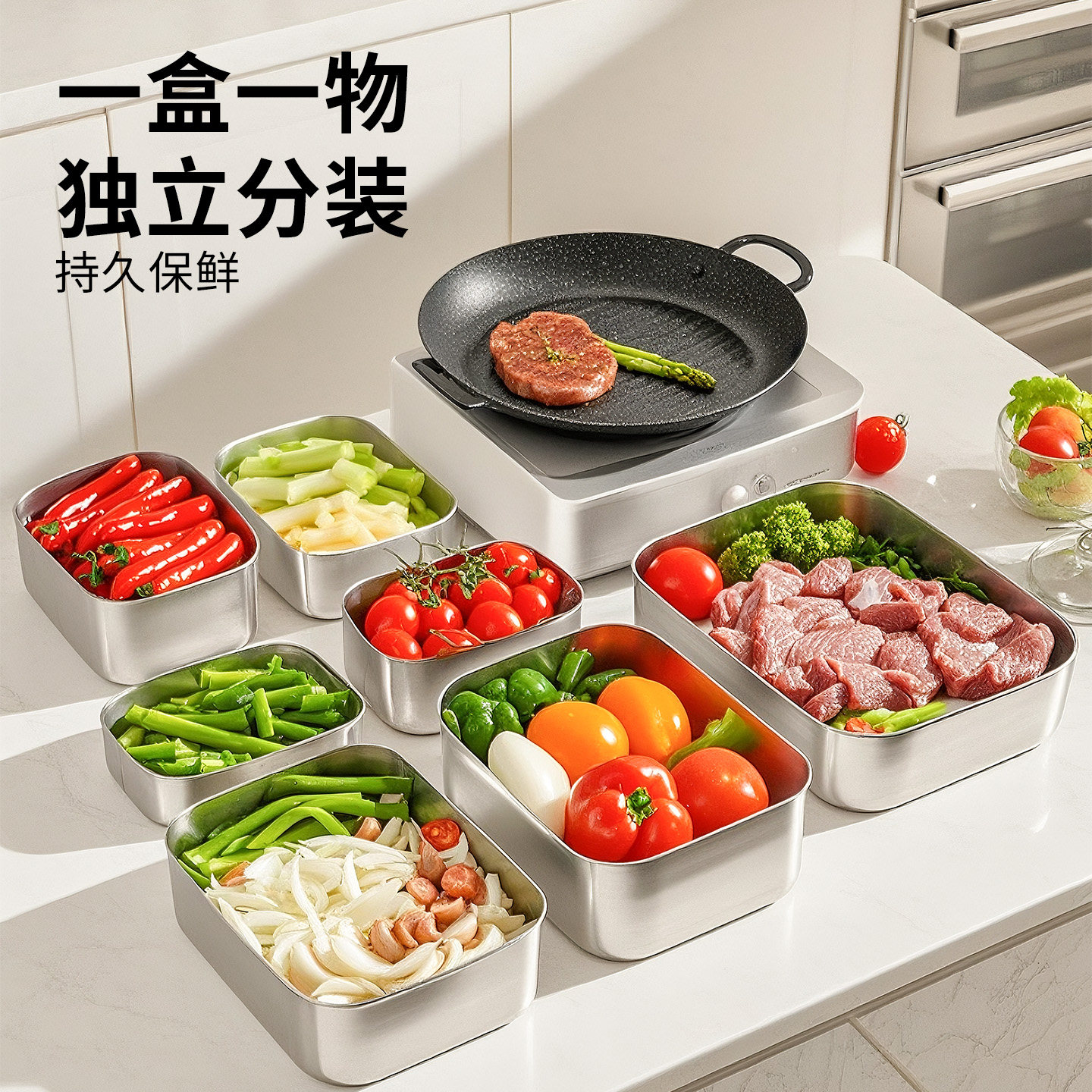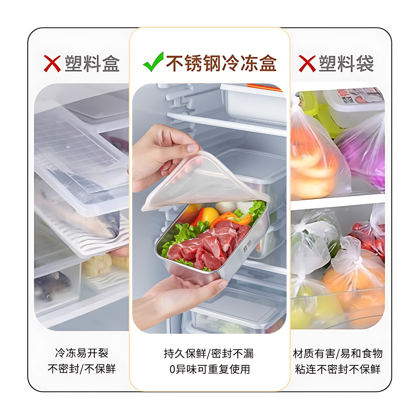 保鲜盒不锈钢食品级冰箱专用家用带盖密封便当盒饭盒收纳冷冻盒子