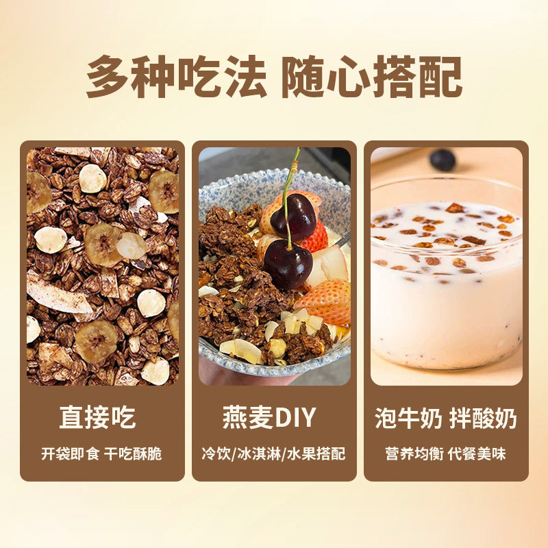 ohmyfood格兰诺拉榛果黑巧克力可可烘焙燕麦片坚果酸奶碗代餐即食