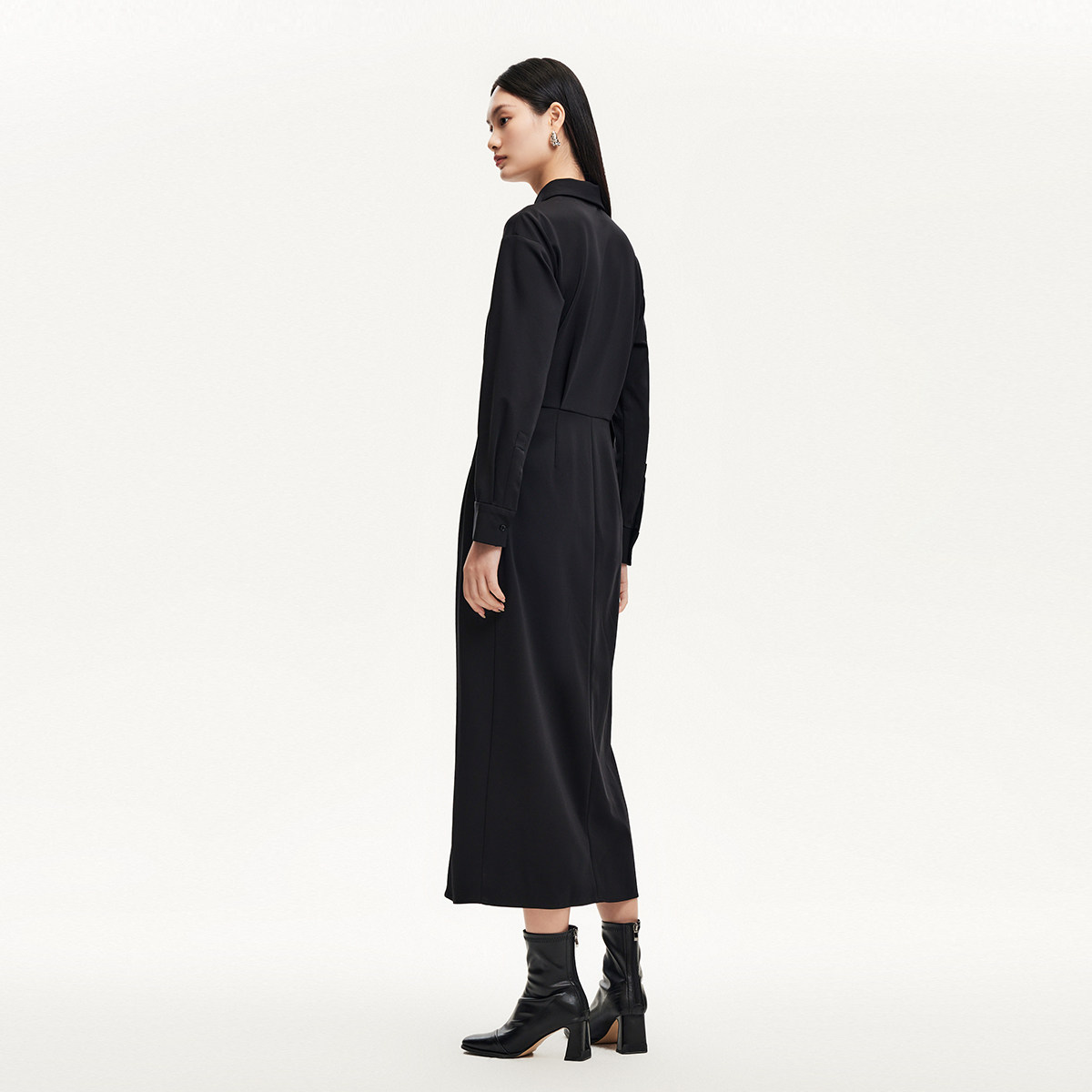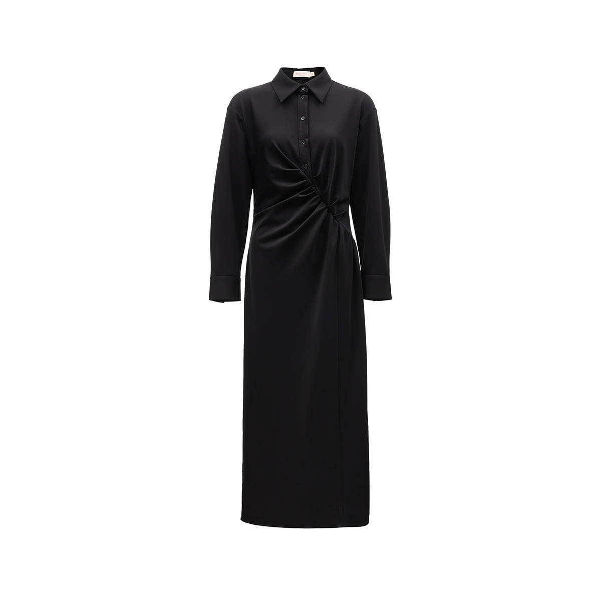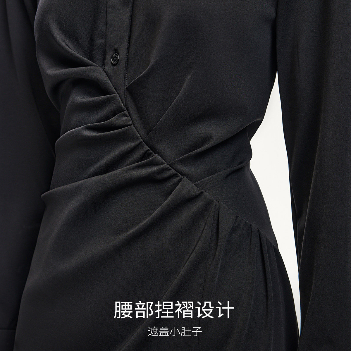 Vero Moda奥莱连衣裙秋冬新商场同款捏褶收腰显瘦通勤小黑裙气质
