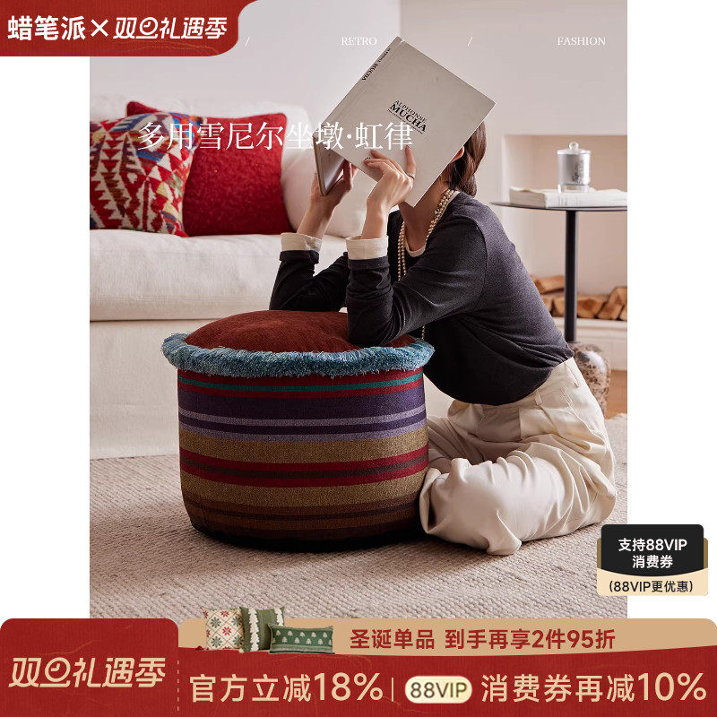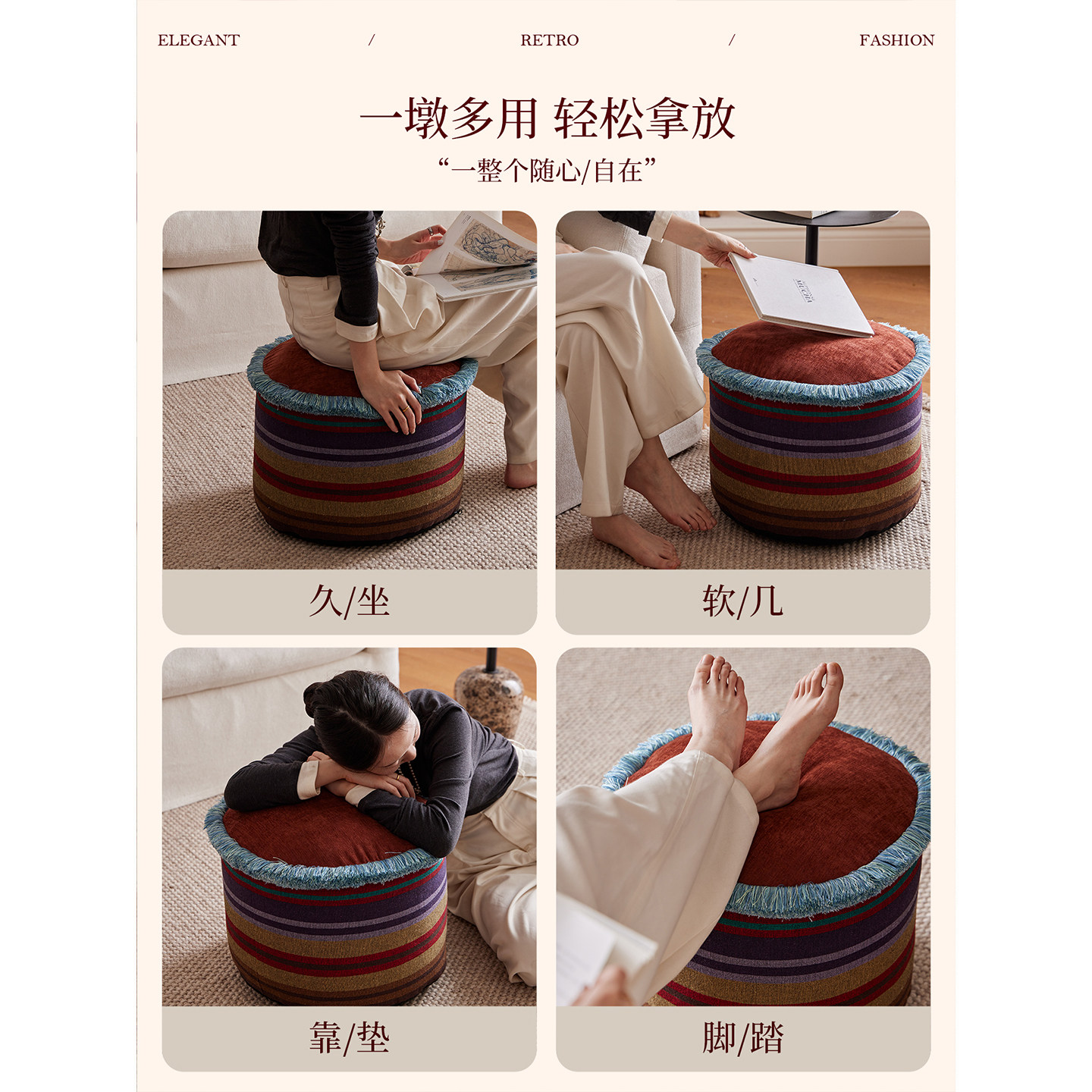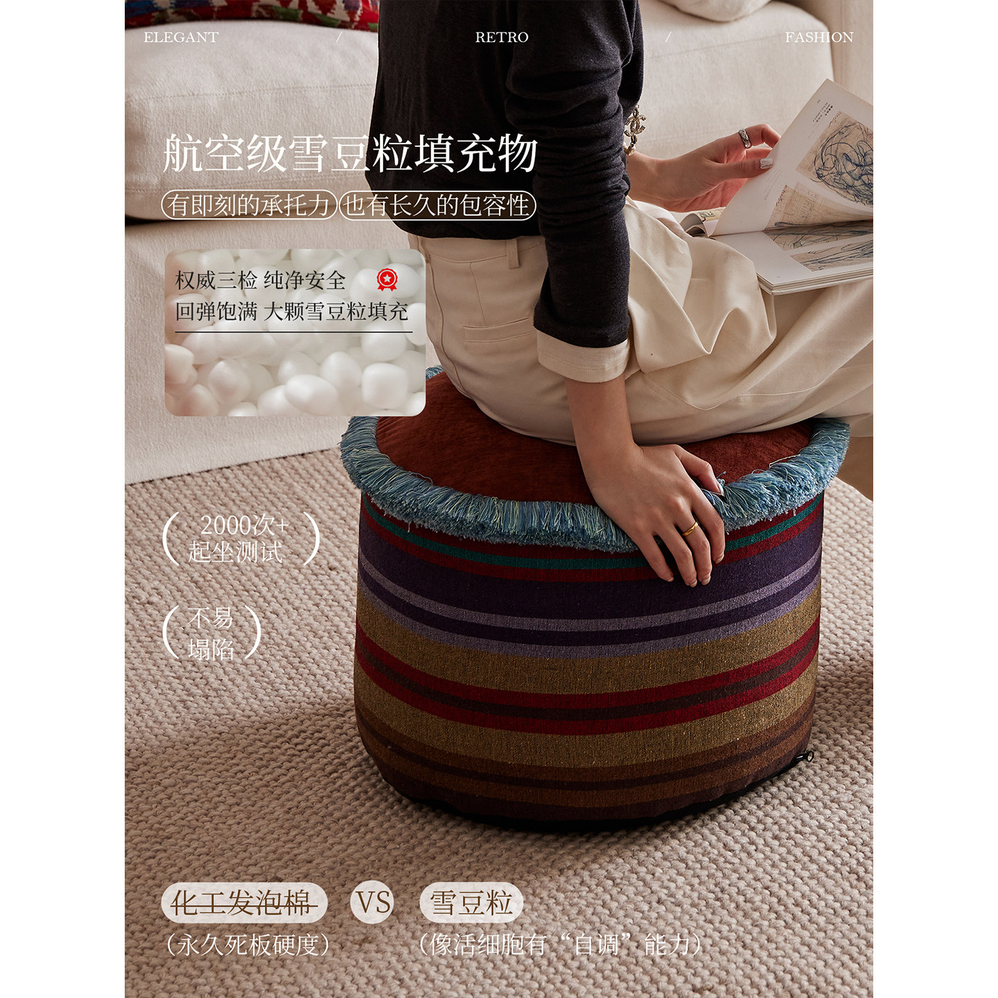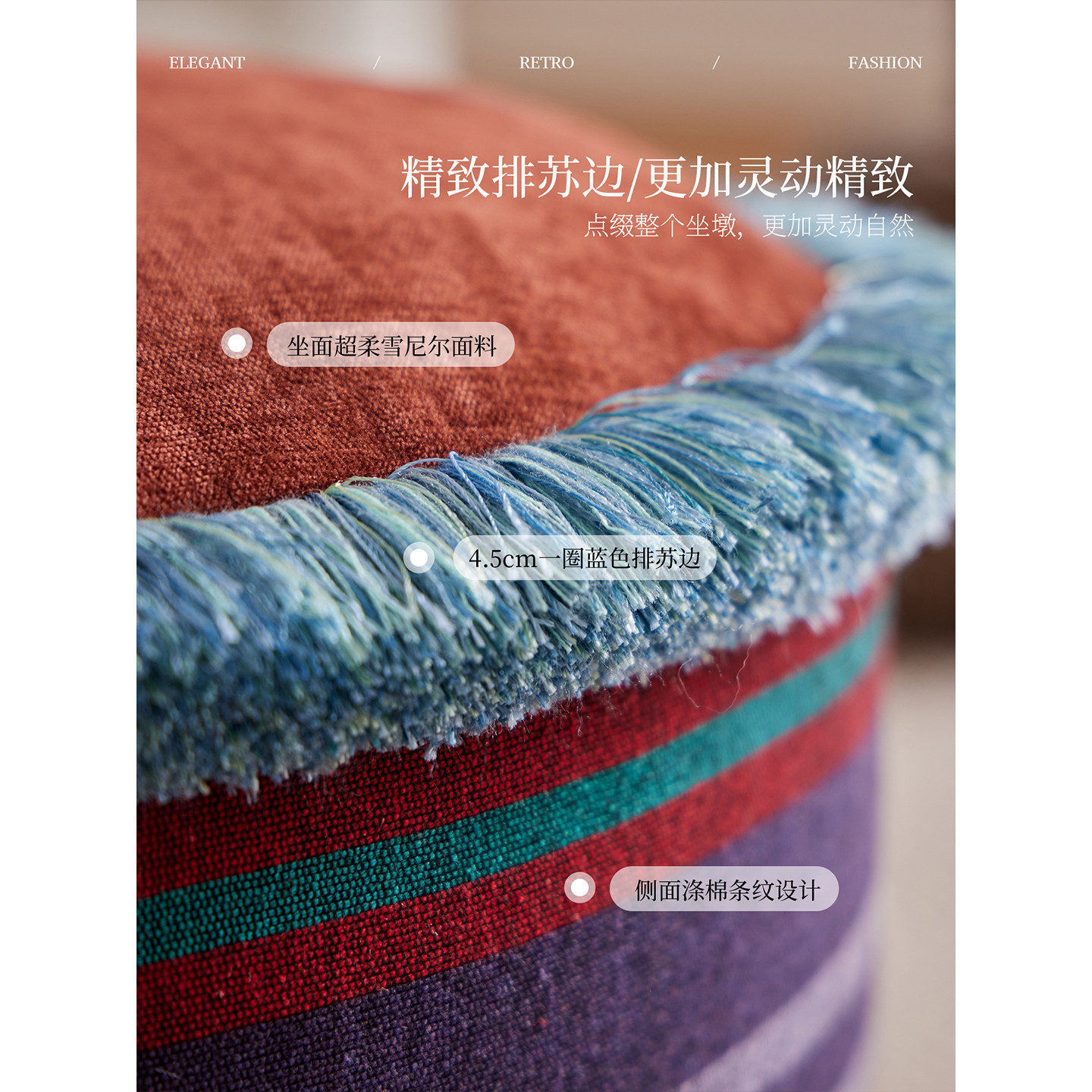 蜡笔派虹律坐墩简约现代轻奢排苏换鞋凳可拆洗搁脚凳蒲团坐垫