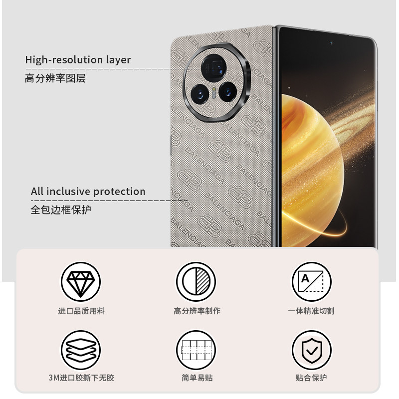 荣耀MagicV5素皮全包后膜MagicV6钻石纹背膜包边新款V3前屏边框膜Vs3中轴膜3M个性背膜防摔遮瑕背膜Vs2镜头膜