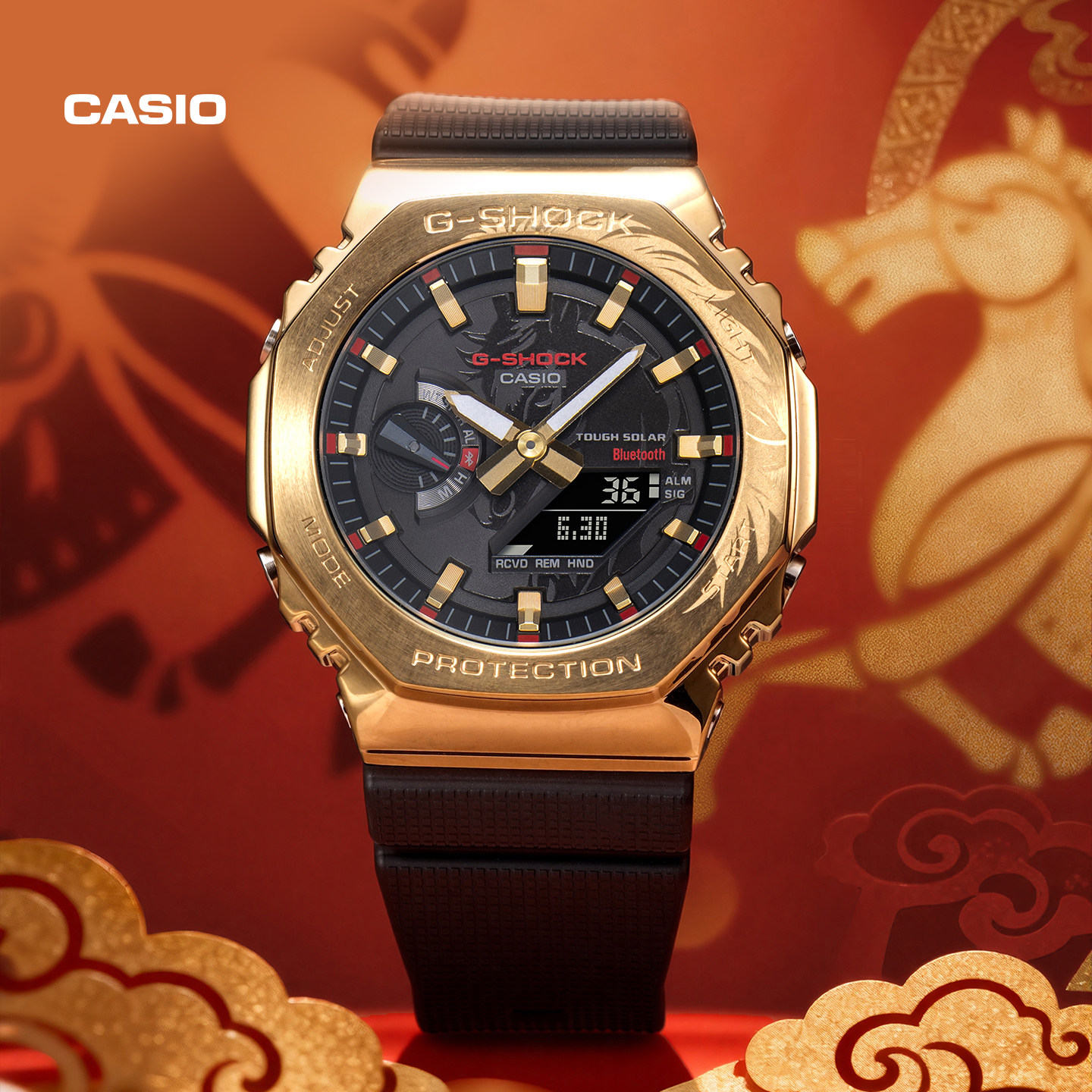 卡西欧官方旗舰店GBM-2100CX马年生肖金属八角蓝牙手表男G-SHOCK