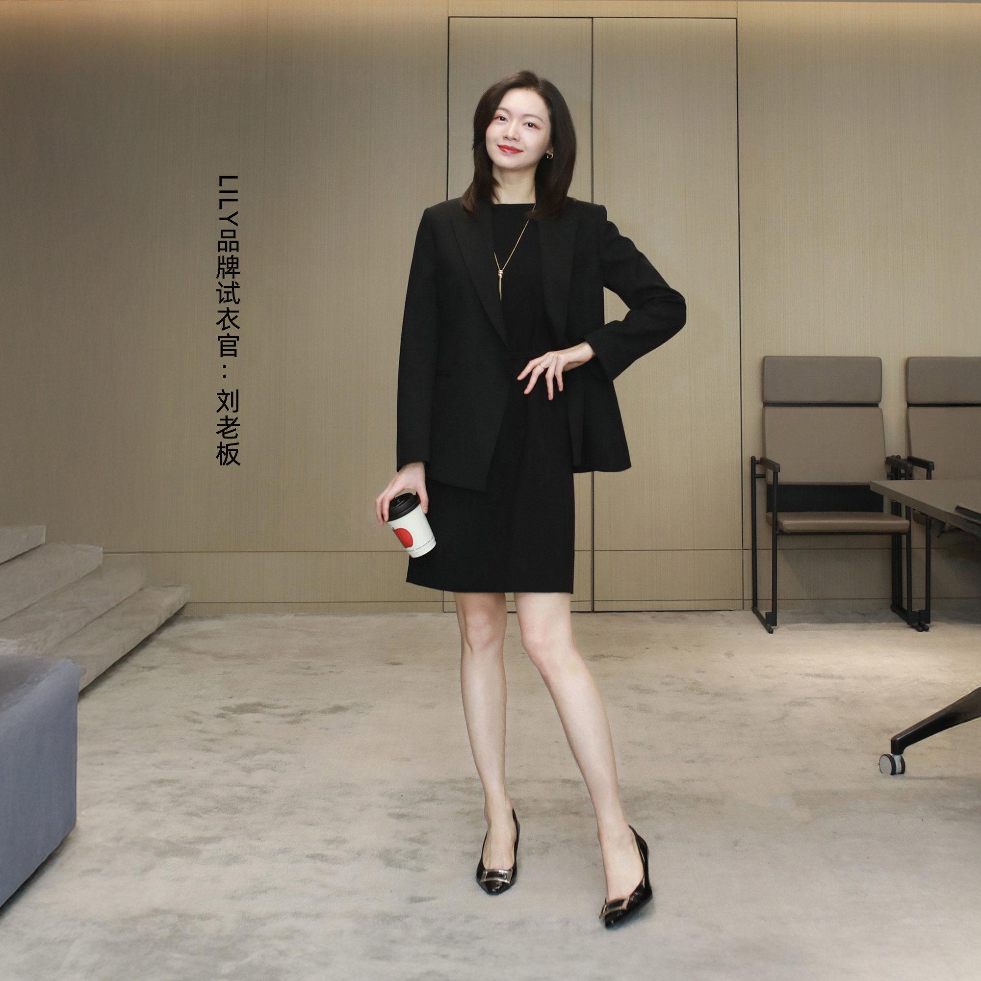 【大师系列西装2.0】商场同款LILY2026春含羊毛腰带黑色西装外套