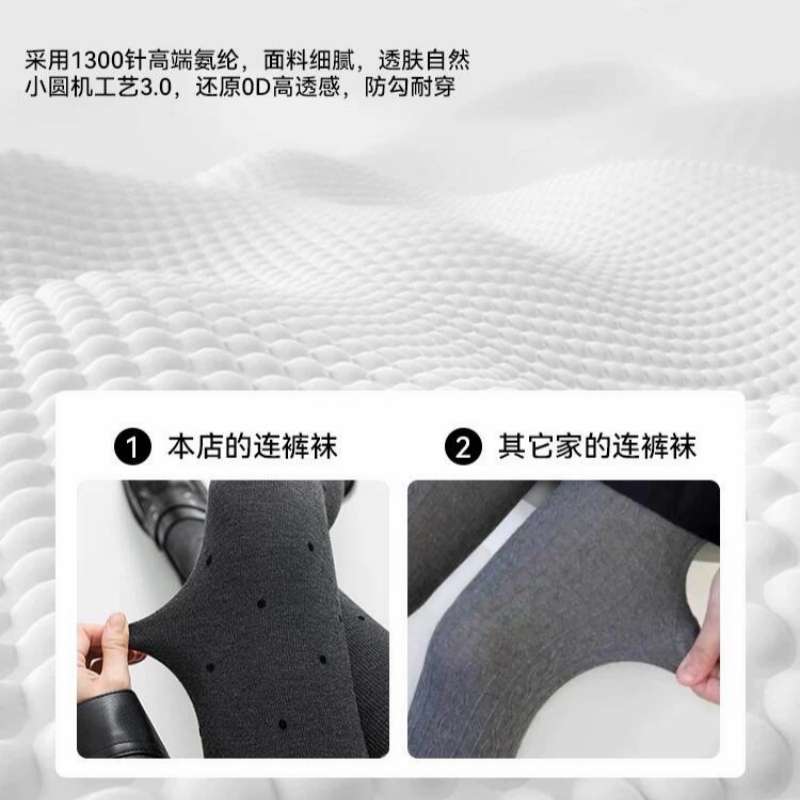 菇娘家热压连裤袜高支棉羊毛打底裤女灰色大码秋冬黑色保暖瘦腿袜