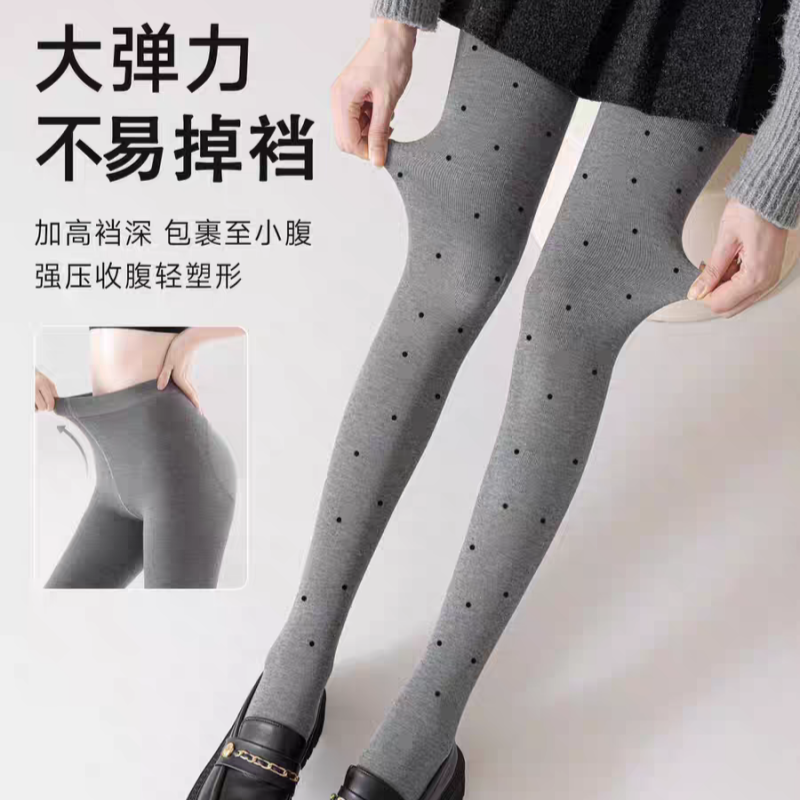 灰色波点连裤袜女秋冬季加绒加厚不掉档保暖打底裤压力显瘦外穿袜