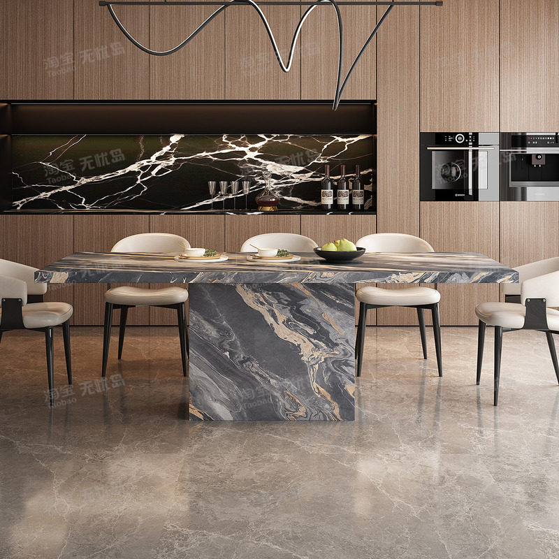 意式轻奢威尼斯棕岩板餐桌长方形意式极简设计师家具别墅饭桌组合