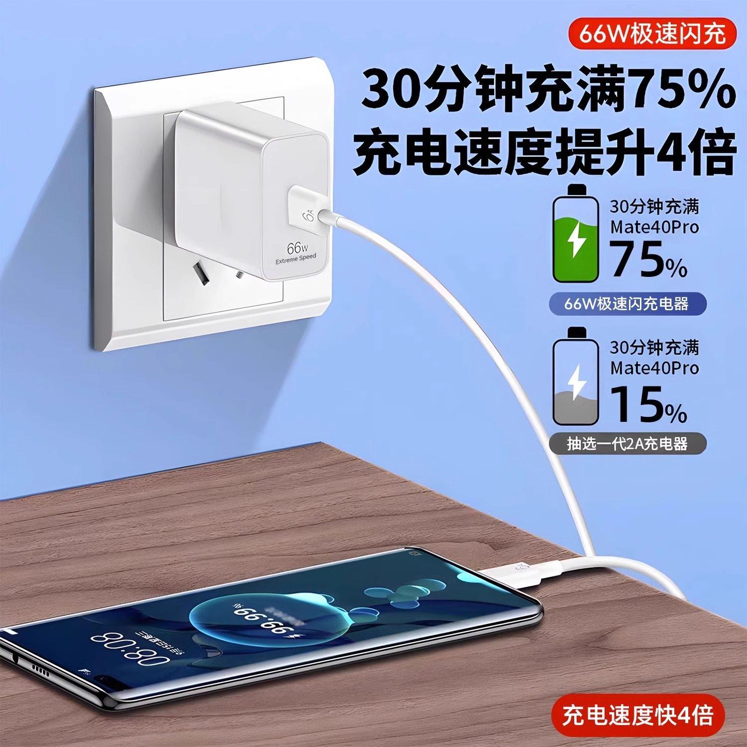 适用华为120W充电器100W超级快充头mate40 p50p40p30 nova9/8/7荣耀70手机66W闪充60v20插头6se线原装正品pro