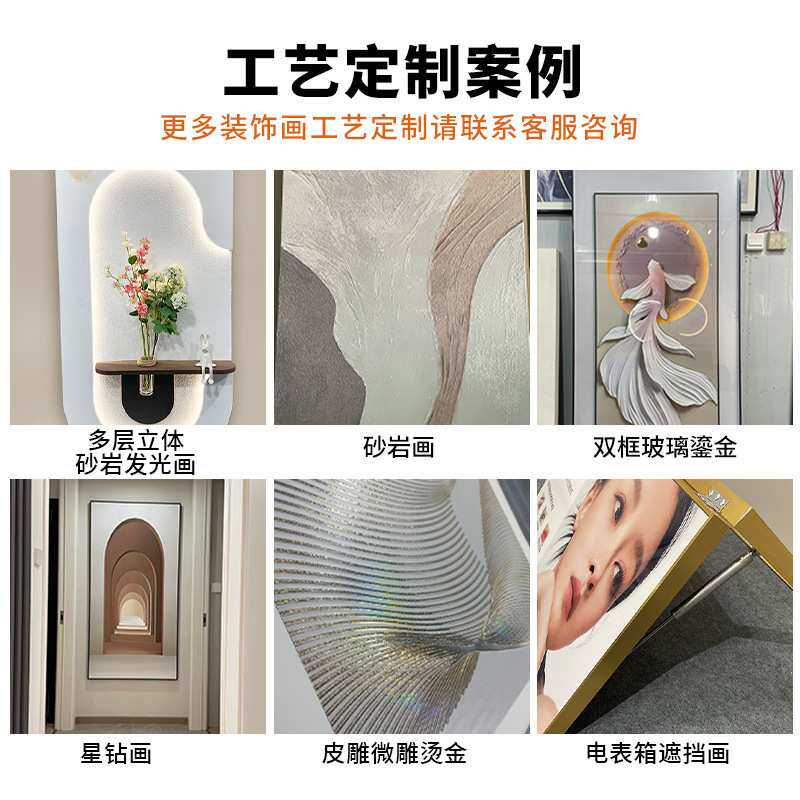 定制肌理画壁画立体砂岩带灯实木无框挂画走廊背景墙装饰画