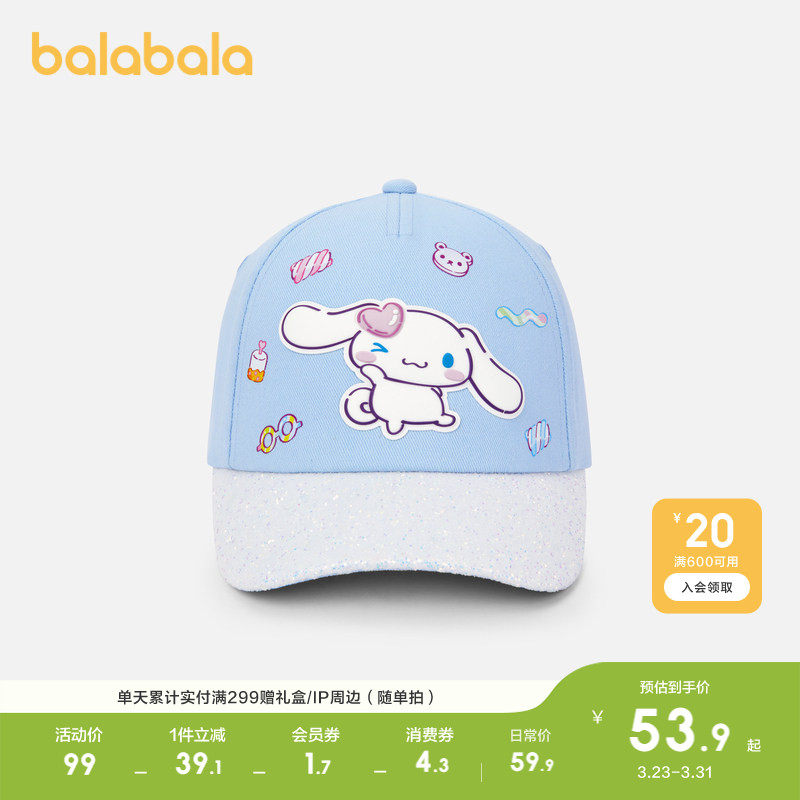 【三丽鸥IP】巴拉巴拉儿童帽子女童棒球帽遮阳帽闪光运动户外防晒