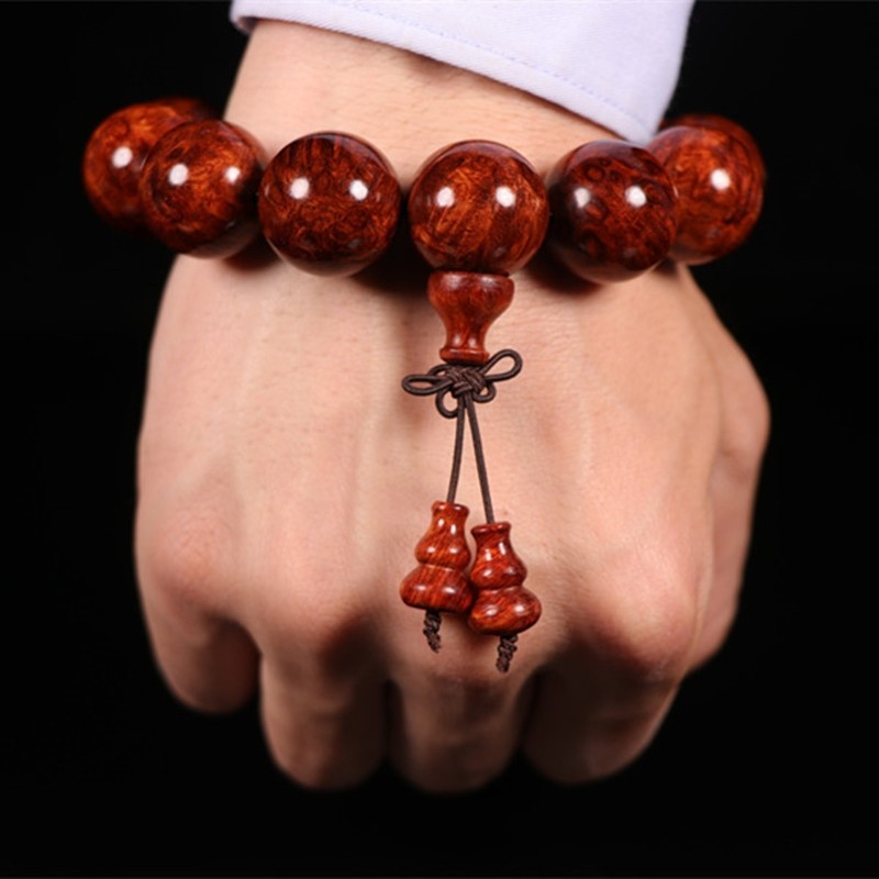 海南黄花梨满瘤疤手串男士20mm老料虎皮纹紫油梨佛珠手链女海黄