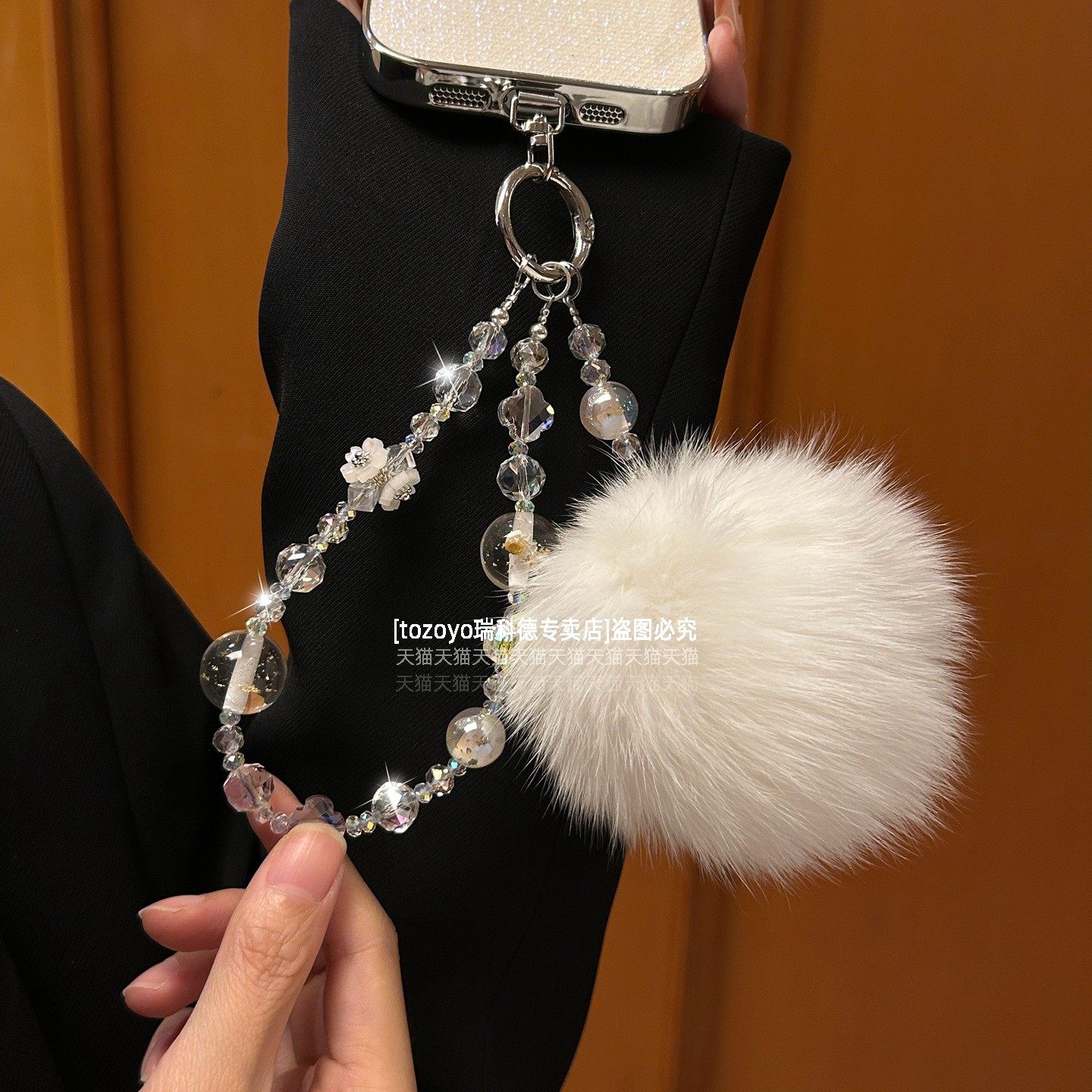 晶莹剔透水晶手机链巨好看挂链毛球吊坠包包挂饰轻奢高级感串珠手腕链条小众气质仙女腕带挂绳手链车钥匙扣壳