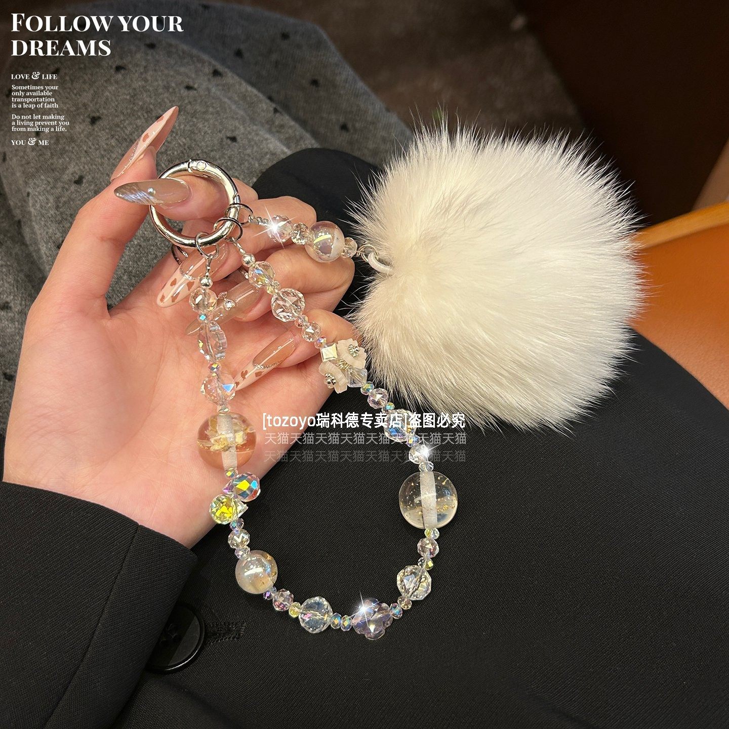 奢华高级感水晶手提链条手腕短挂绳带夹片壳钥匙扣包包挂件潮