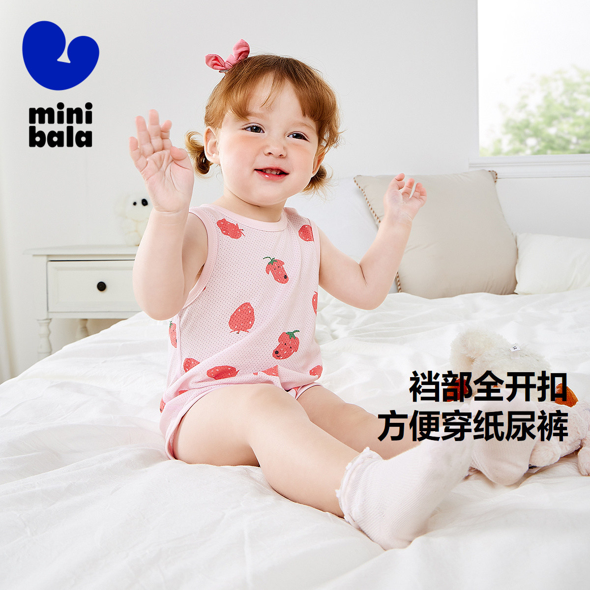 迷你巴拉巴拉男女宝宝网眼透气三角衣婴儿连体衣爬服不闷汗夏季