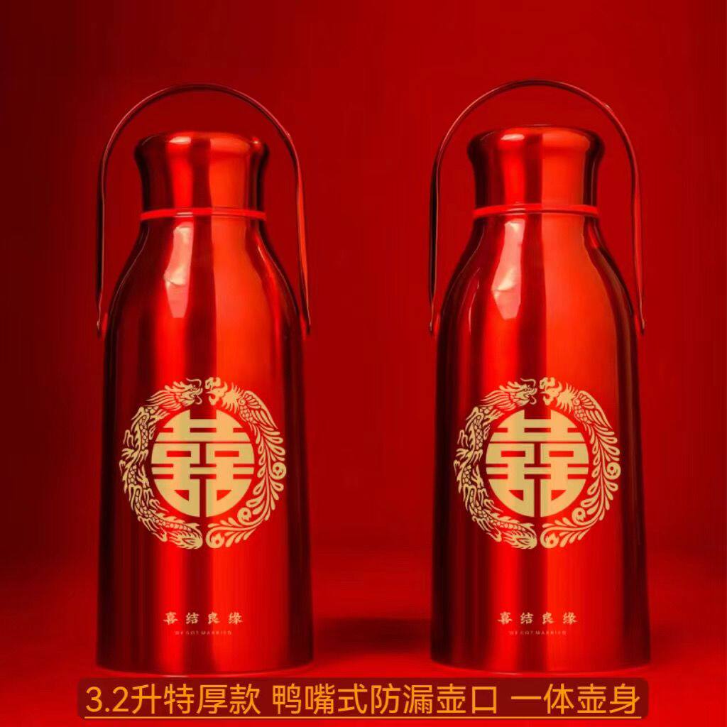 结婚用品婚庆陪嫁红色暖水壶热水瓶保温壶结婚一对保温瓶暖壶家用