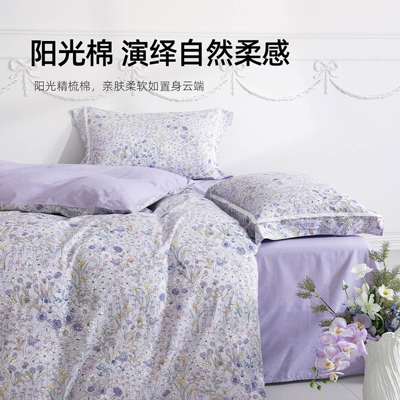 梦洁家纺床上四件套全棉纯棉床单被套印花套件卧室春秋季床上用品