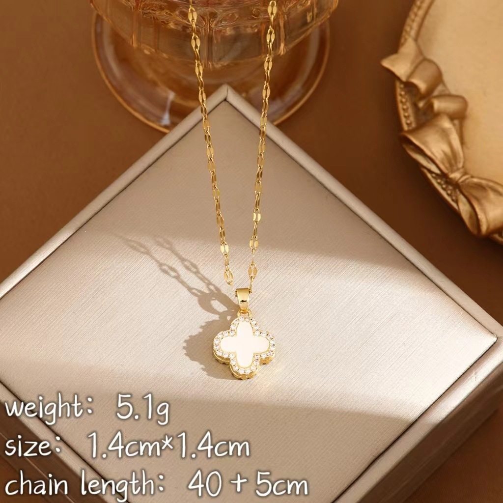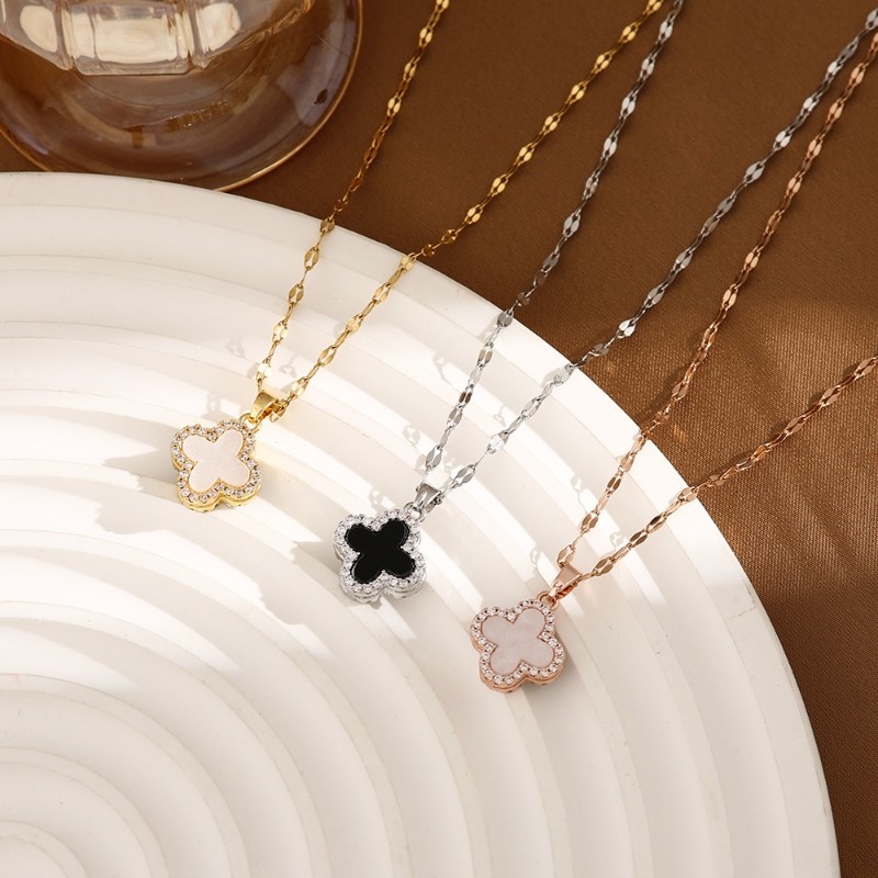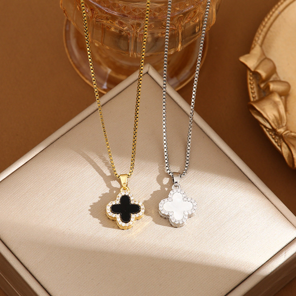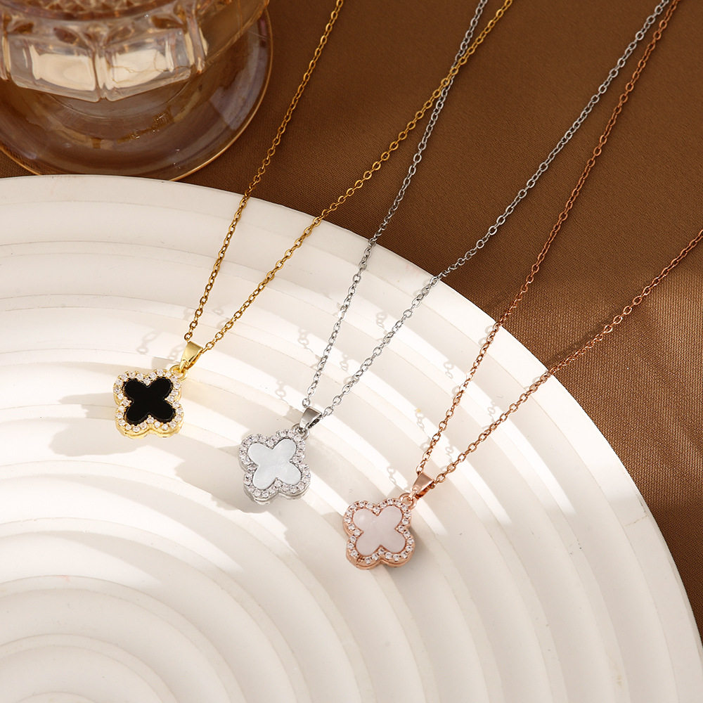 老银匠黑白镶钻双面四叶草项链女幸运草吊坠轻奢锁骨链高级感百搭