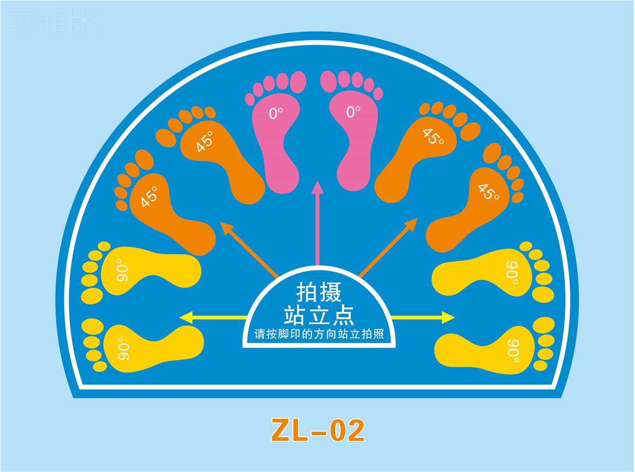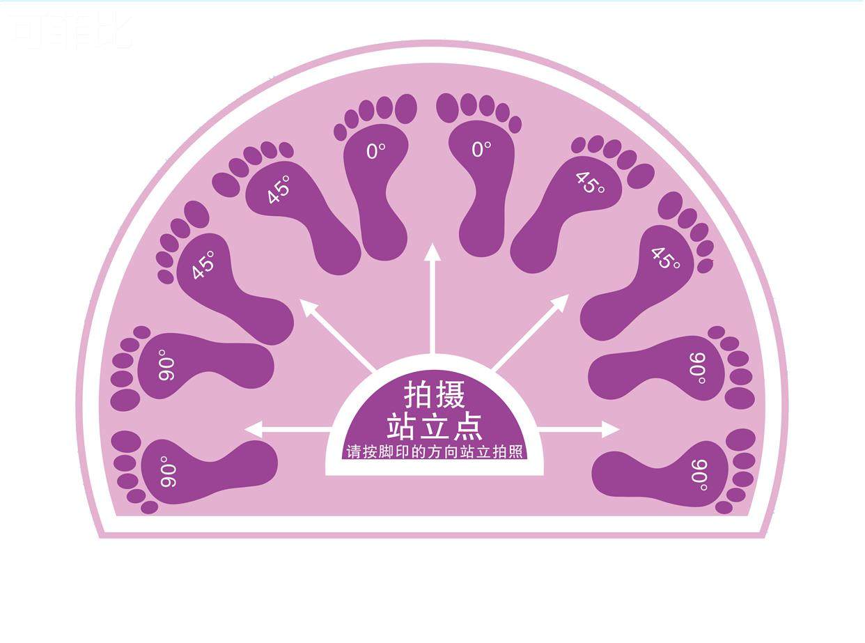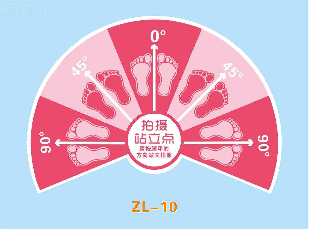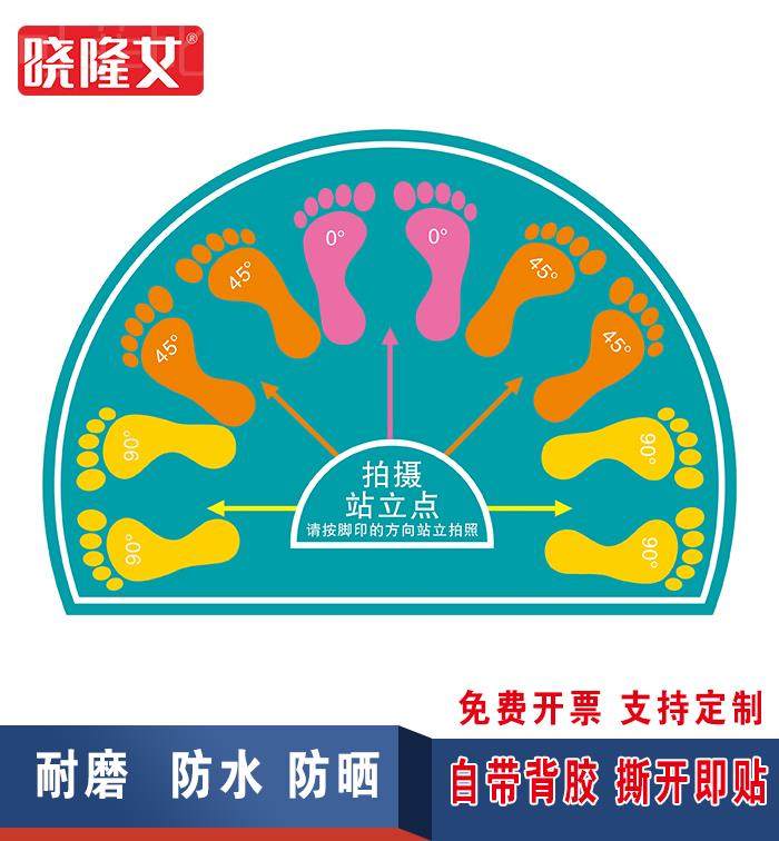 拍照角度地贴半径正畸指示贴耐磨弧形地标医美病房地板标识贴天蓝色拍摄站立点地面标示贴pvc定制