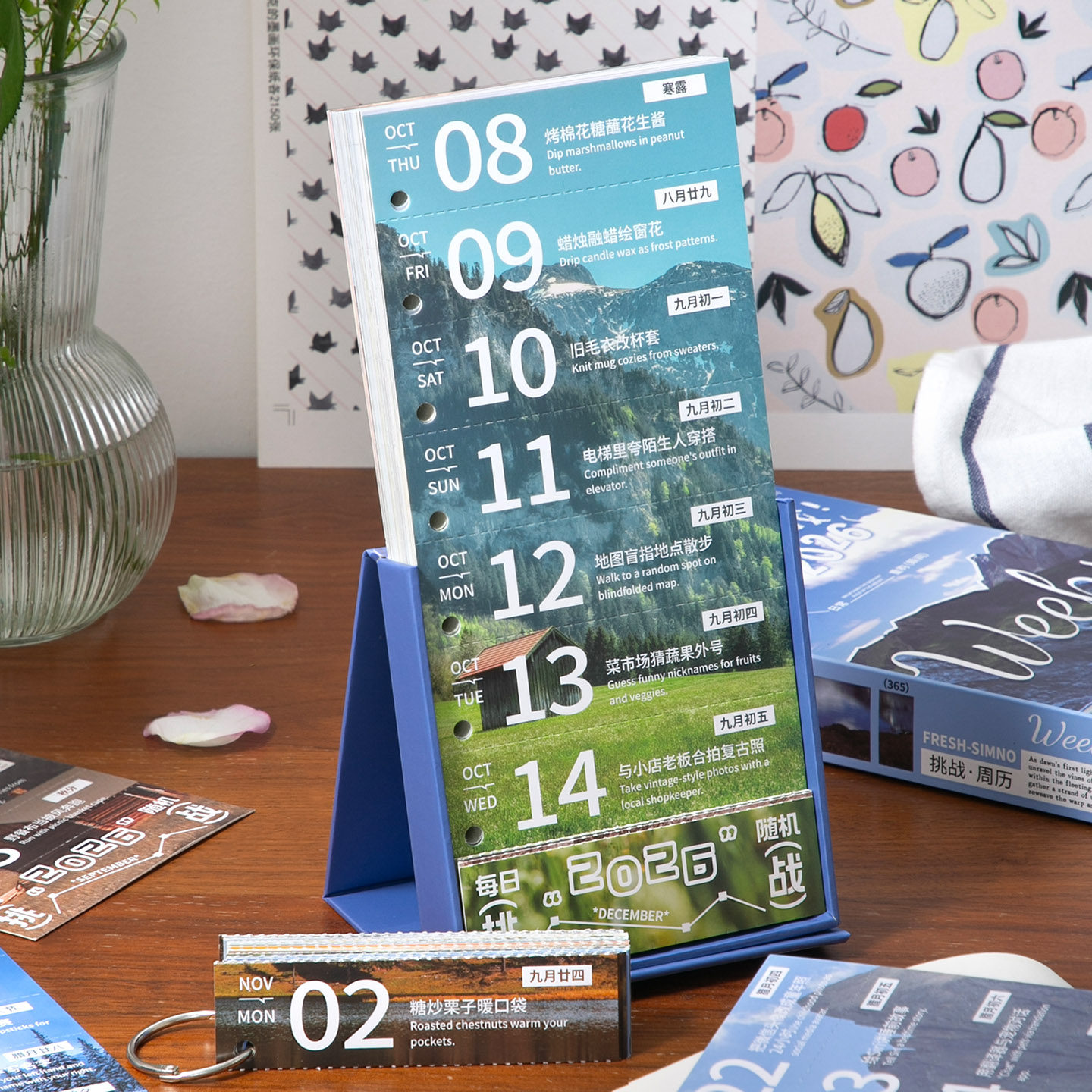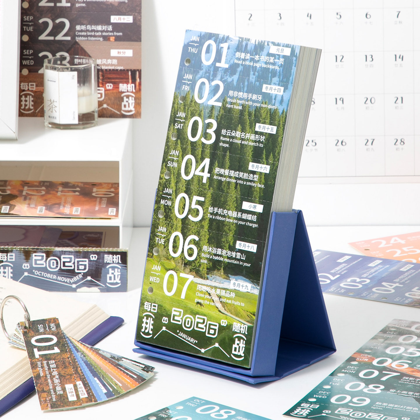 2026年新款台历365天每日随机挑战周历高级趣味互动励志打卡日历diy可撕手撕挂件创意ins风办公桌面摆件台历