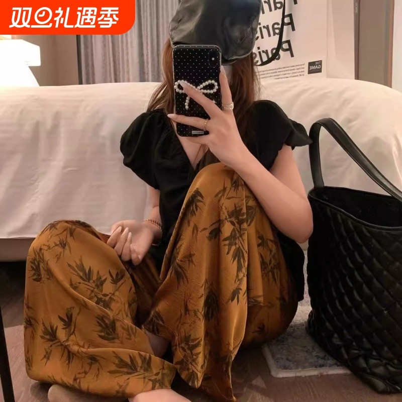 大码棉绸睡裤女夏人造棉薄款绵绸灯笼裤可外穿防蚊裤度假沙滩长裤