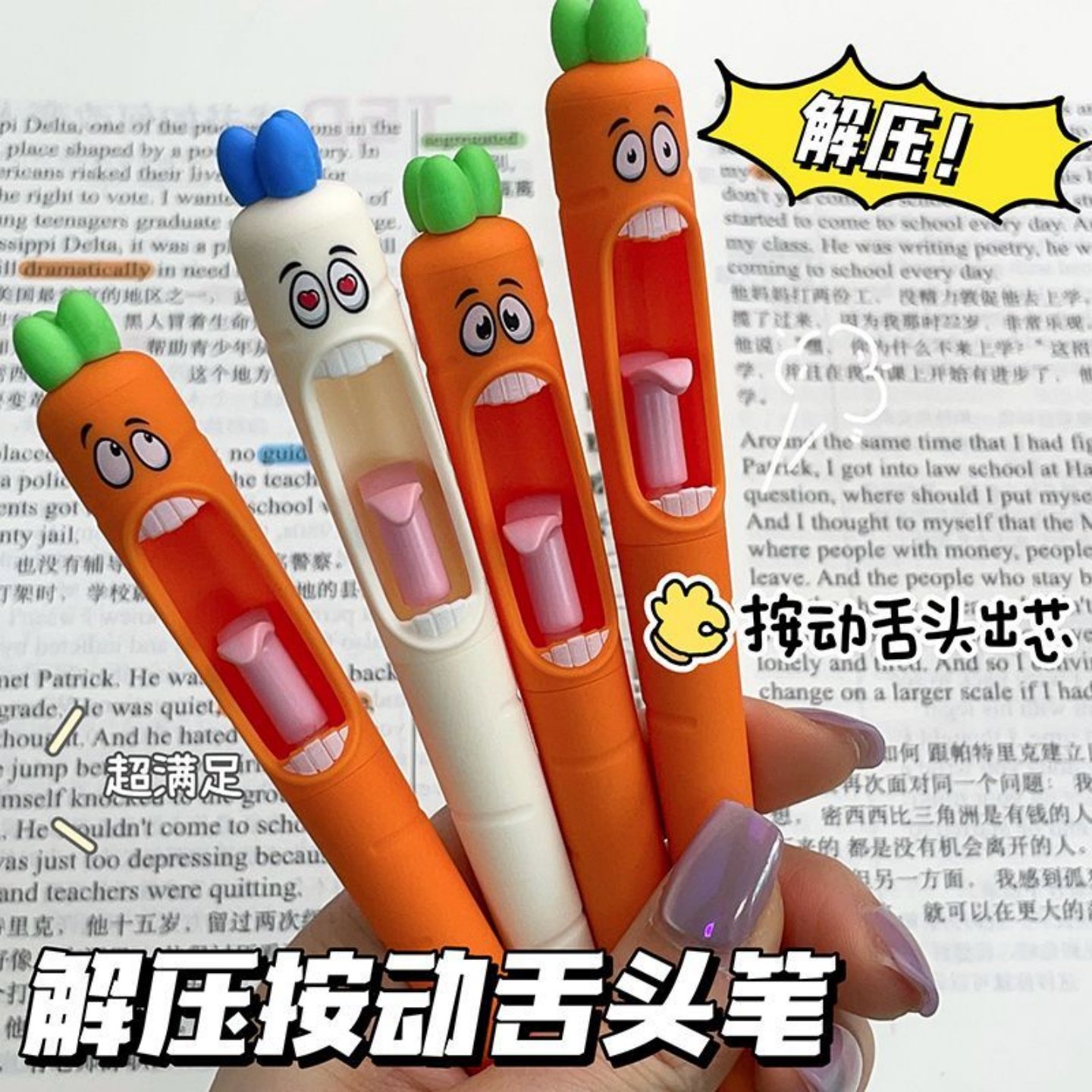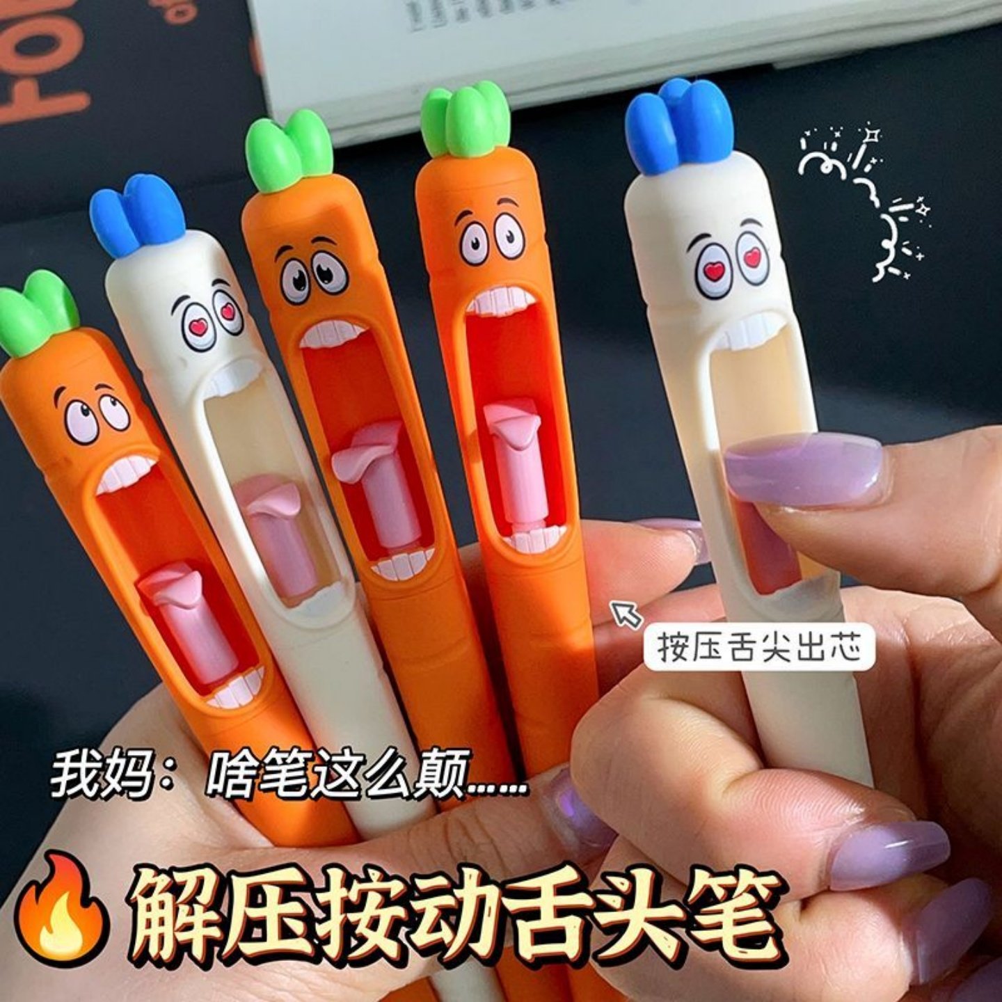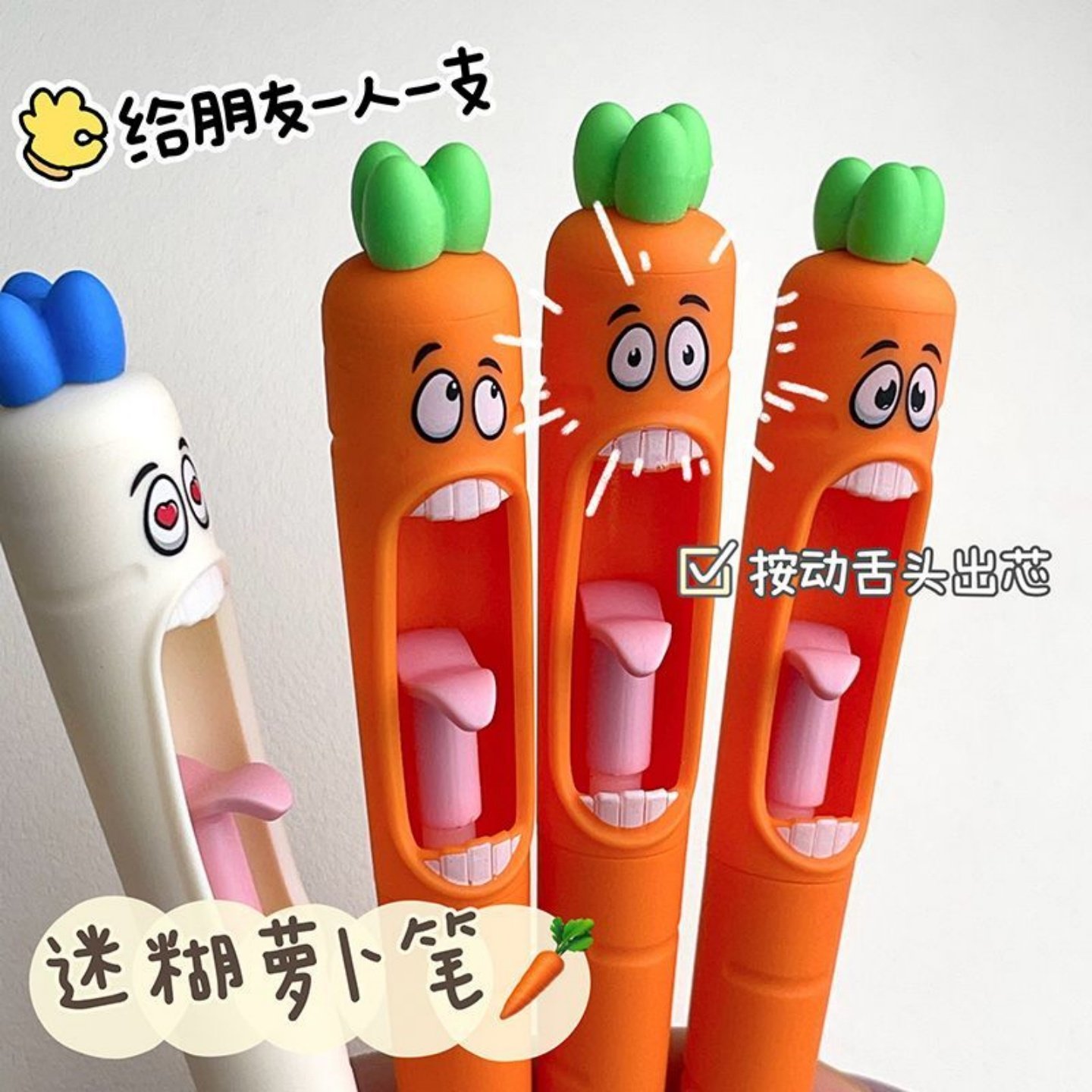 凡物象迷糊萝卜搞怪按动中性笔ins高颜值学生考试速干刷题笔黑笔