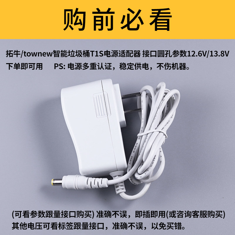 适用于拓牛/townew智能垃圾桶T1S充电器适配器电源垃圾箱充电12.6V/13.8V圆头5V2A