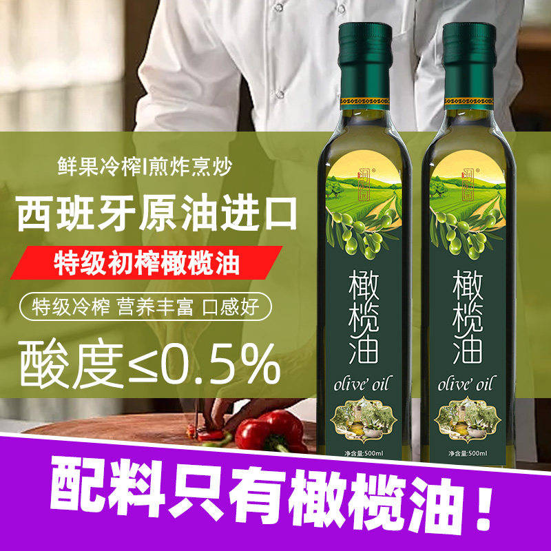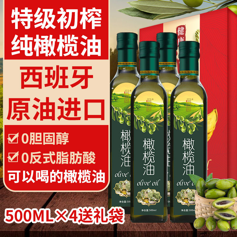 西班牙进口纯橄榄油500ML官方旗舰店特级初榨橄榄油家用食用油