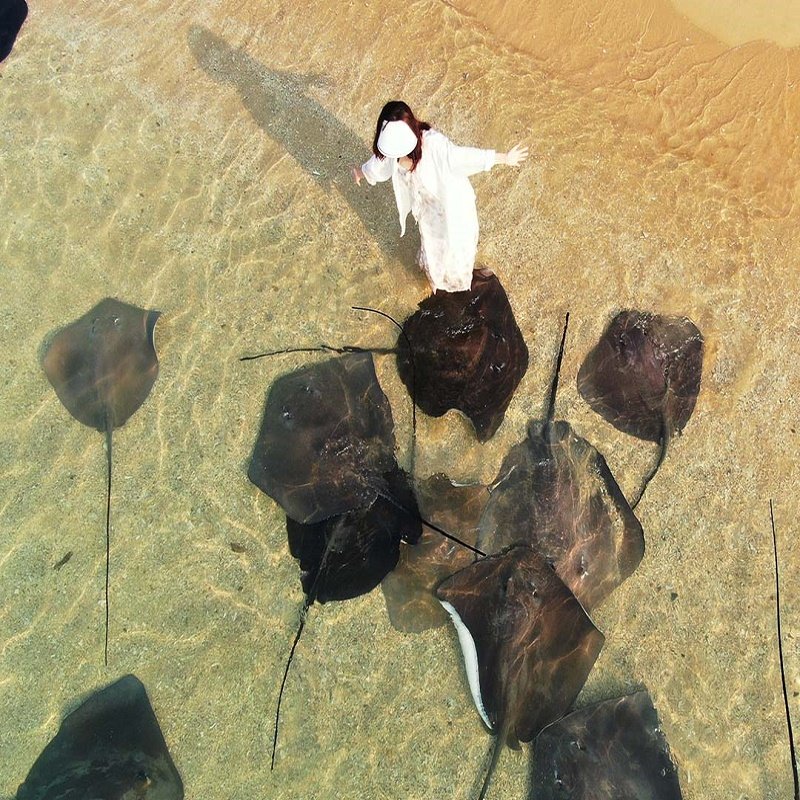 [海南分界洲岛旅游区-魔鬼鱼互动]热门项目。亲子出游优选的特色项目互动感十足。