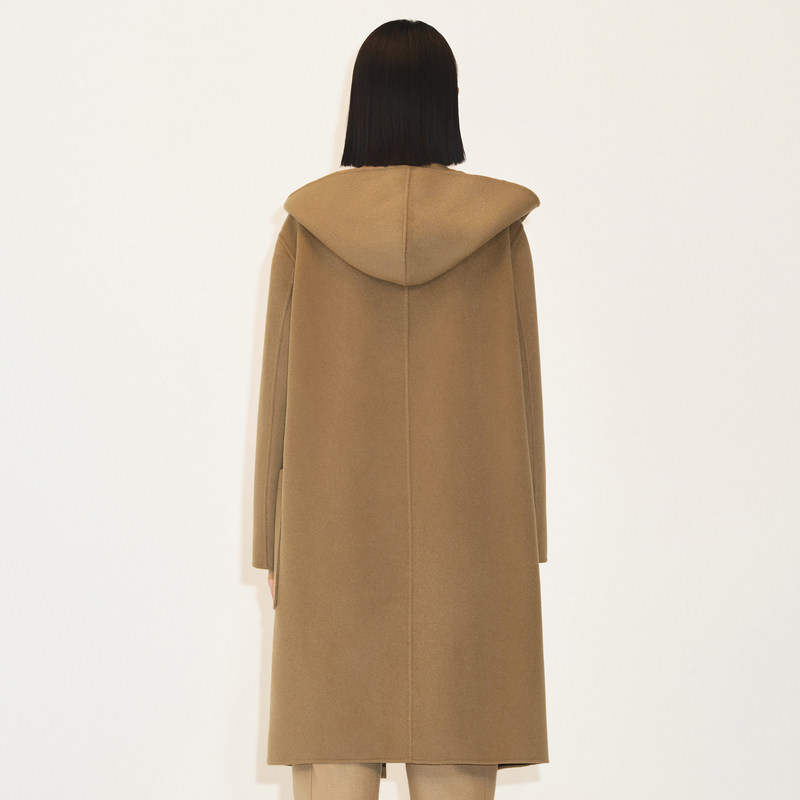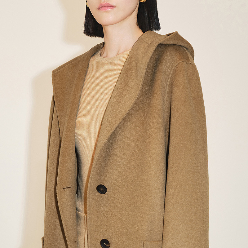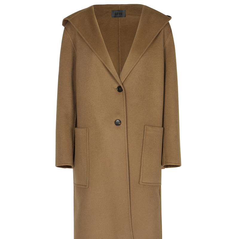 LESS冬季阿拉善白山羊绒大衣女复古连帽长款毛呢外套2MA814370
