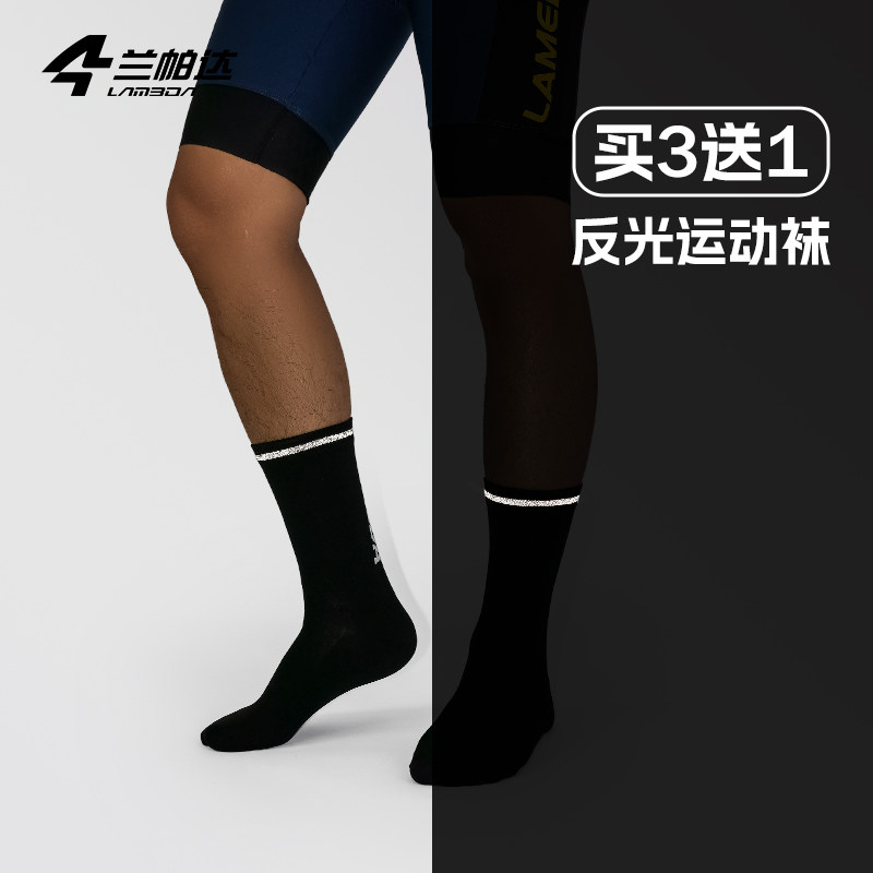兰帕达 7A抗菌反光袜 户外透气吸湿快干尼龙无骨男女款运动骑行袜
