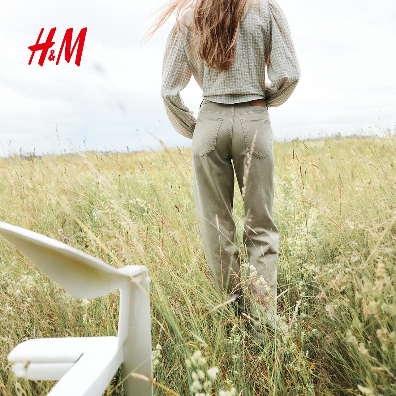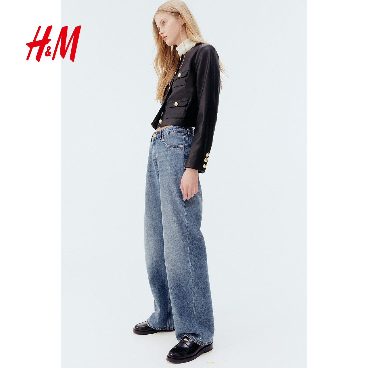 HM女装牛仔裤春季直筒复古牛仔裤直筒波嬉风水洗慵懒高腰0871889