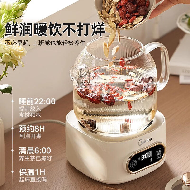 美的全玻璃养生壶恒温办公室小型多功能家用炖煮一体热水壶纯玻璃
