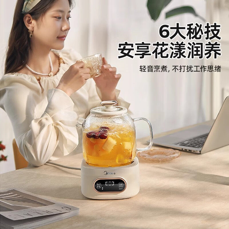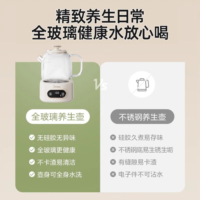 美的养生壶办公室小型恒温烧水炖煮一体多功能玻璃煮茶器2025新款