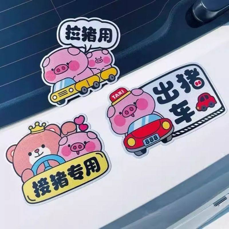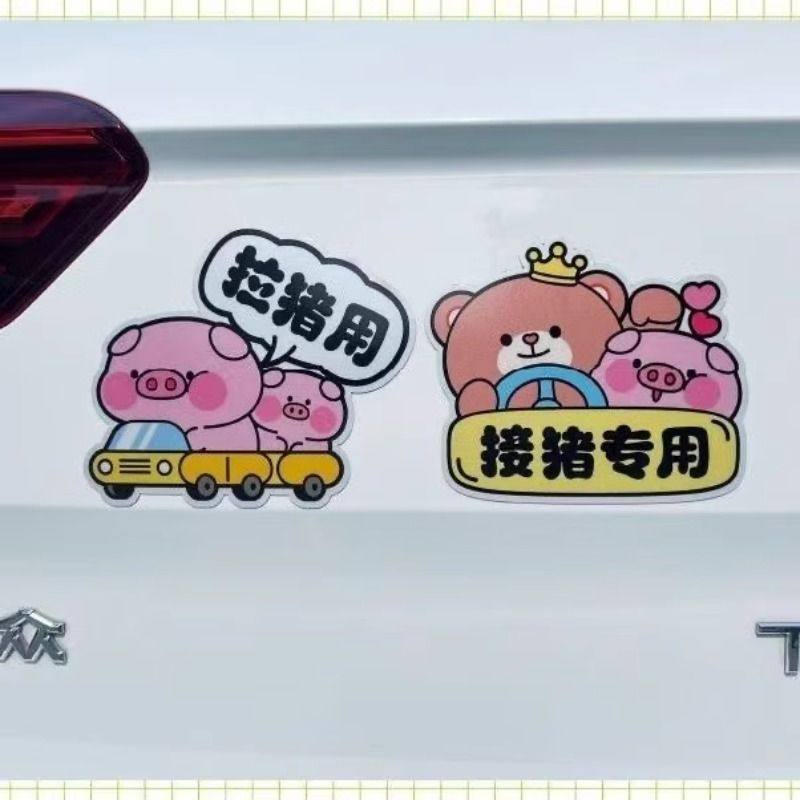 接猪出猪车汽车贴纸搞笑车身划痕遮挡TAXI出租车电动车摩托装饰贴