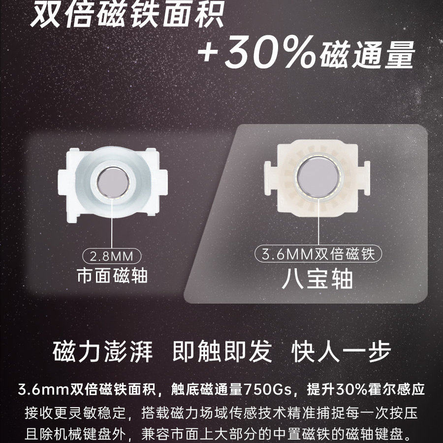 WuqueStudio无缺粉藕八宝磁轴麻将闷声磁轴客制化键盘轴体开关