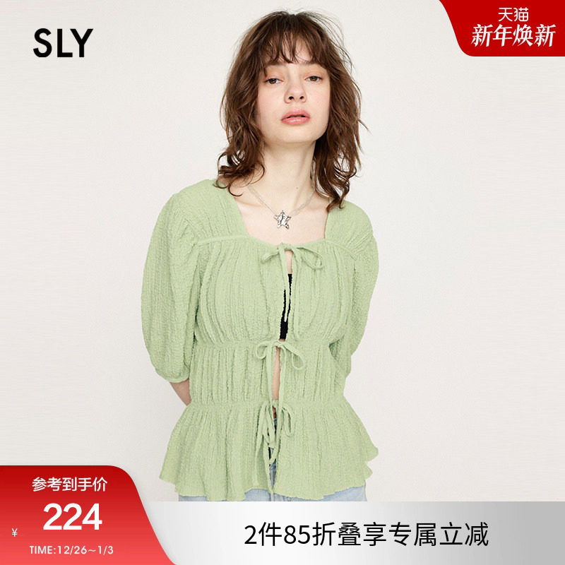 SLY 春季甜美日系正反两穿系带泡泡袖衬衫030HSR30-1861