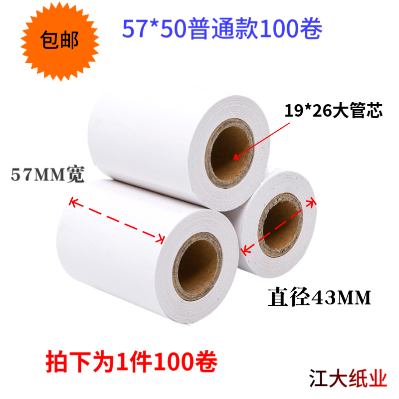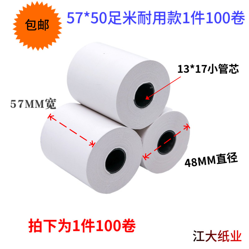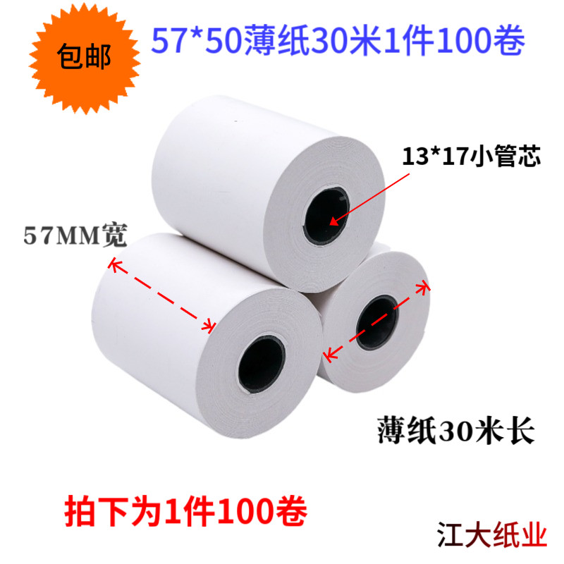 收银纸57x50热敏纸58mm小票纸餐厅超市外卖57X30美团打印纸57*40