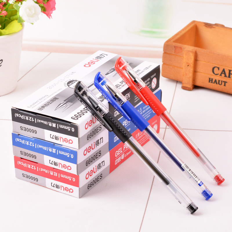 【12支装】得力6600ES中性笔0.5mm子弹头水笔黑色蓝色红色办公用