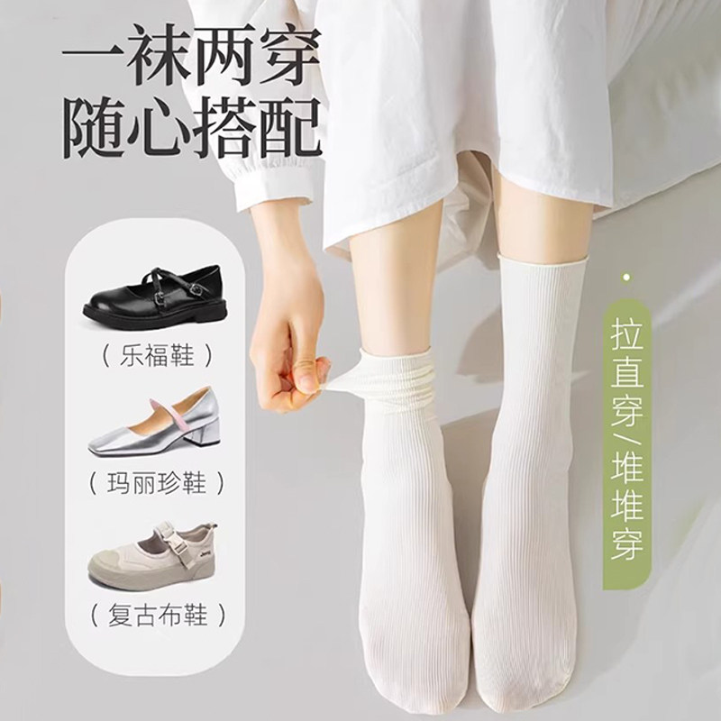 白色冰冰堆堆袜子女夏季薄款夏天中筒冰丝袜长筒夏款凉感薄长袜夏