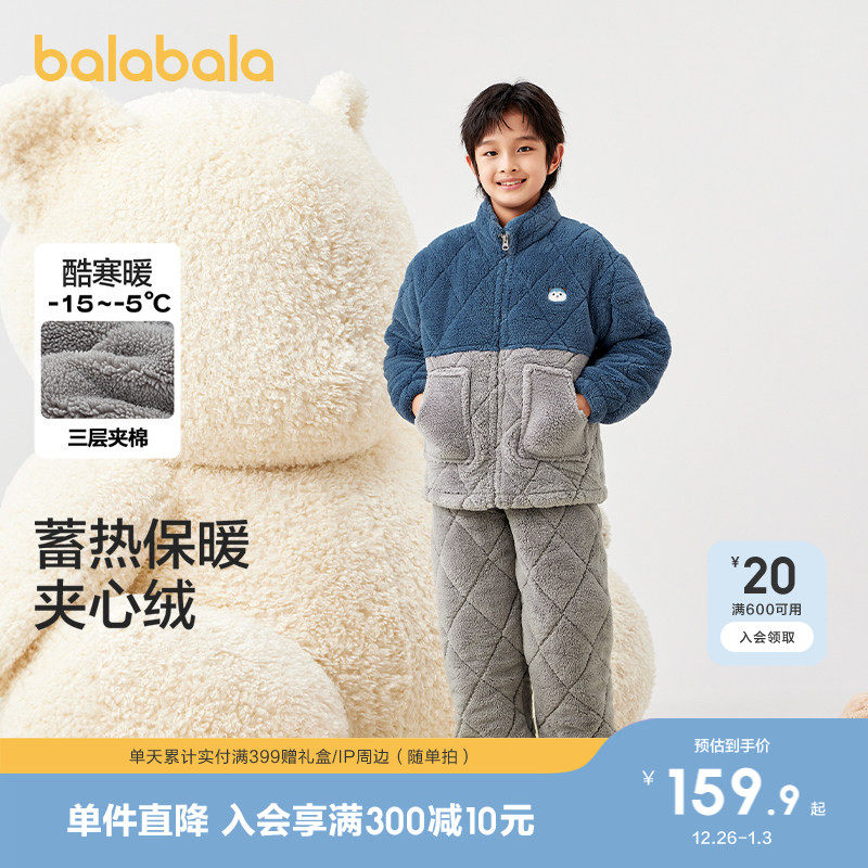 巴拉巴拉宝宝睡衣套装冬季加厚珊瑚绒男女童家居服加绒保暖可外出