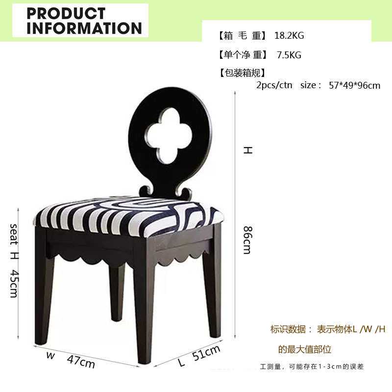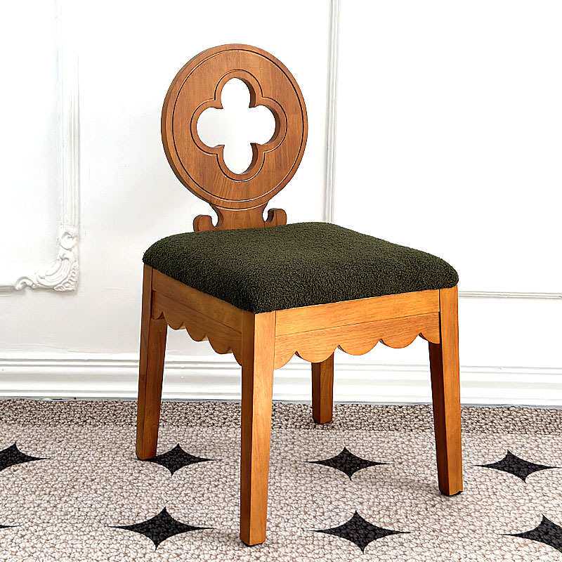 四叶草实木餐椅凳子靠背法式中古风餐桌椅子家用化妆椅镂空靠背