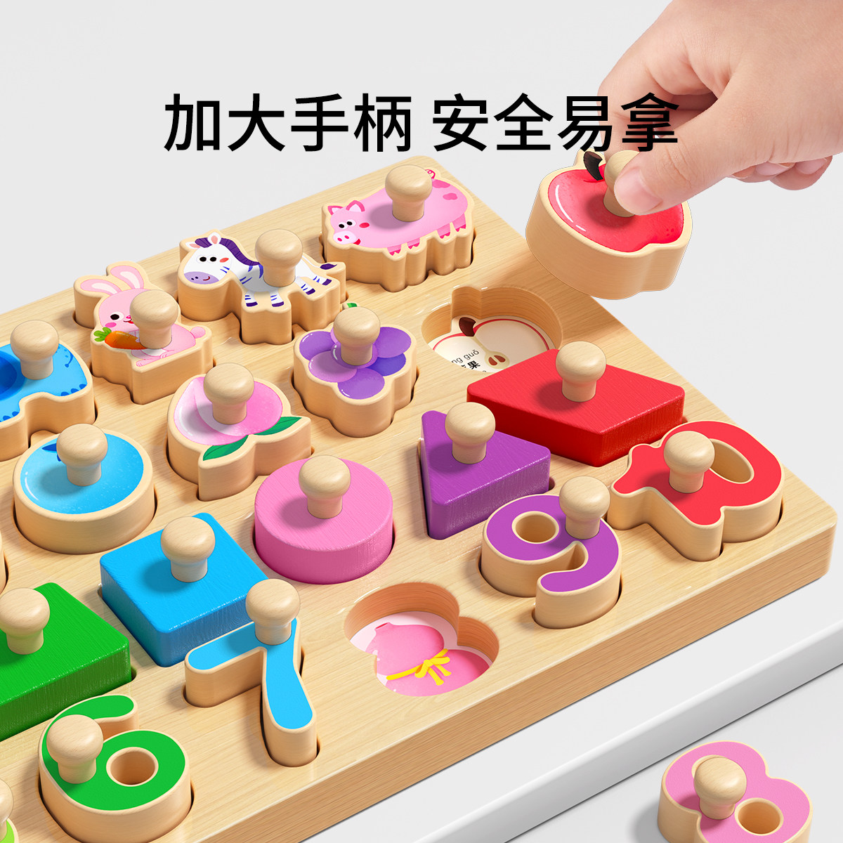 蒙氏早教手抓板拼图益智玩具数字积木教具一岁宝宝儿童1到3岁数学