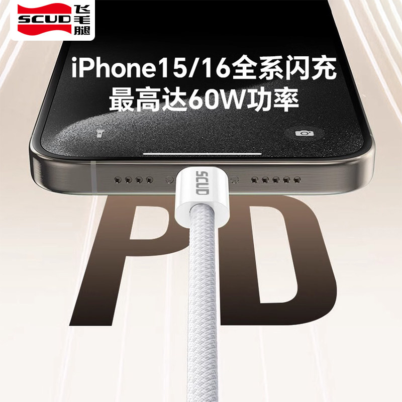 飞毛腿双头typec充电线适用苹果16iphone15plus手机promax闪充ipad安卓c口华为充电器超级PD快充平板车载数据