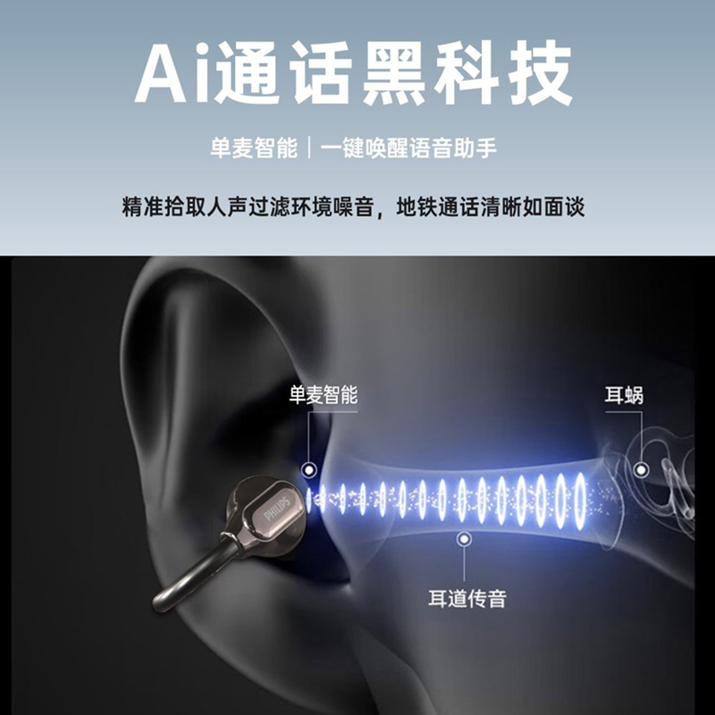 飞利浦TAQ3020耳夹式耳机无线降噪通话跑步气骨传导长续航蓝牙5.0