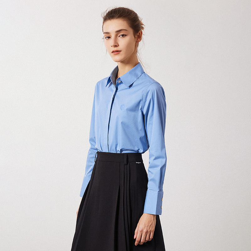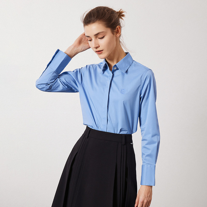 Navigare意大利小帆船蓝色长袖衬衫女春季新款时尚设计感商务衬衣