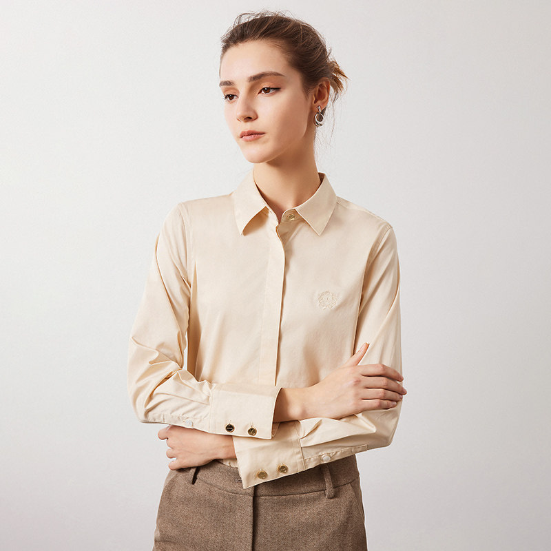 纯棉DP免烫白衬衫女定制绣LOGO春秋修身100支职业抗皱长袖衬衣